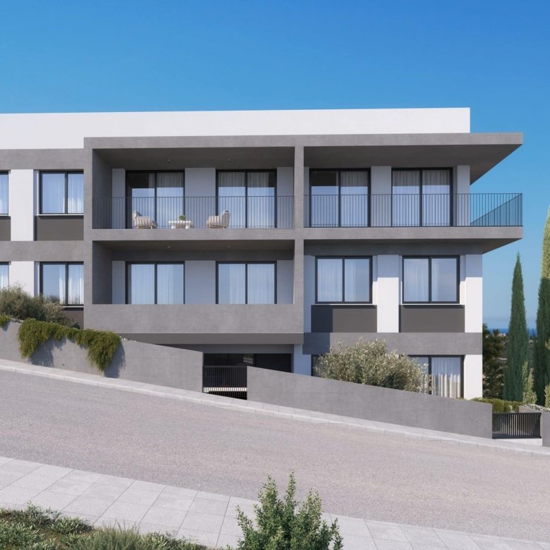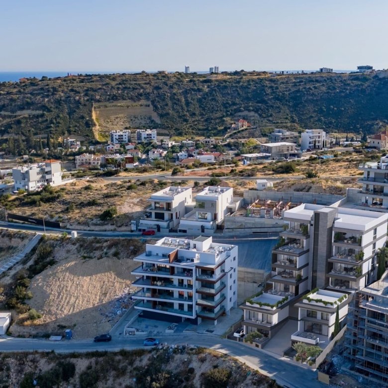 This new residential project in the prestigious hillside area of Germasogeia, Limassol, offers an unparalleled living experience with sweeping views of the city, the Mediterranean sea, and the verdant hills surrounding the area. The development features a selection of elegant residences, including 1, 2, and 3-bedroom apartments as well as 2 maisonettes, each designed to harmonize with the natural beauty of the landscape. The modern architecture is characterized by a sophisticated interplay of white stone and deep grey wall cladding, creating a striking visual contrast that complements the serene environment.