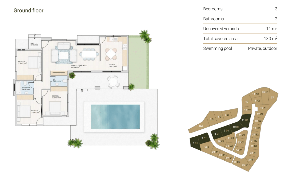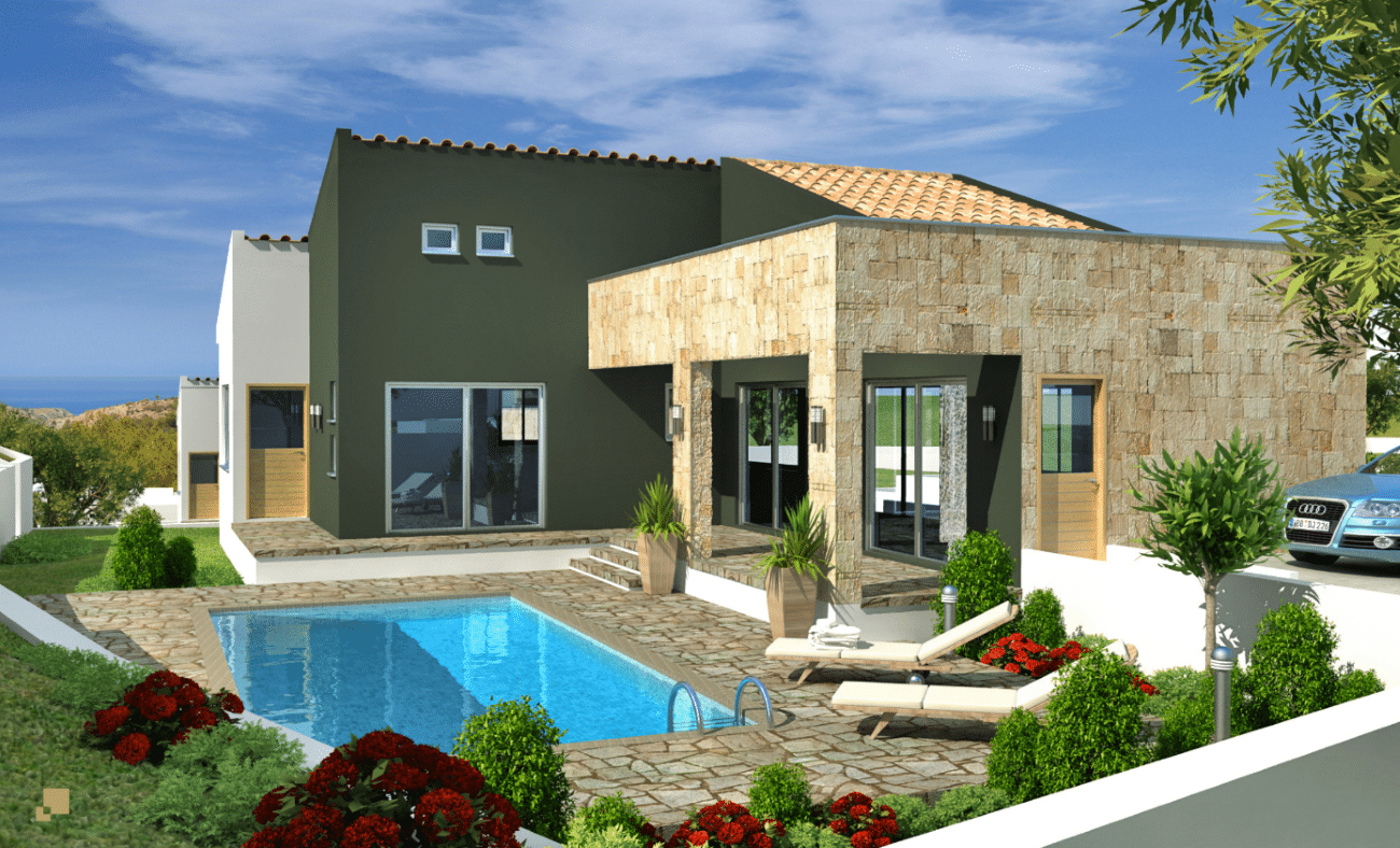 The ground floor includes a foyer, living and dining areas, a bar, a sitting room with a fireplace, a kitchen with a dining area, a laundry room, a bedroom, a cellar, a storage room, a shower with a toilet, and verandas. The first floor offers three bedrooms (including a master bedroom with an en-suite bathroom), an office, a playroom, an additional bathroom, and verandas. The exterior boasts a large, covered parking area with an electric door for two cars and a barbecue area.