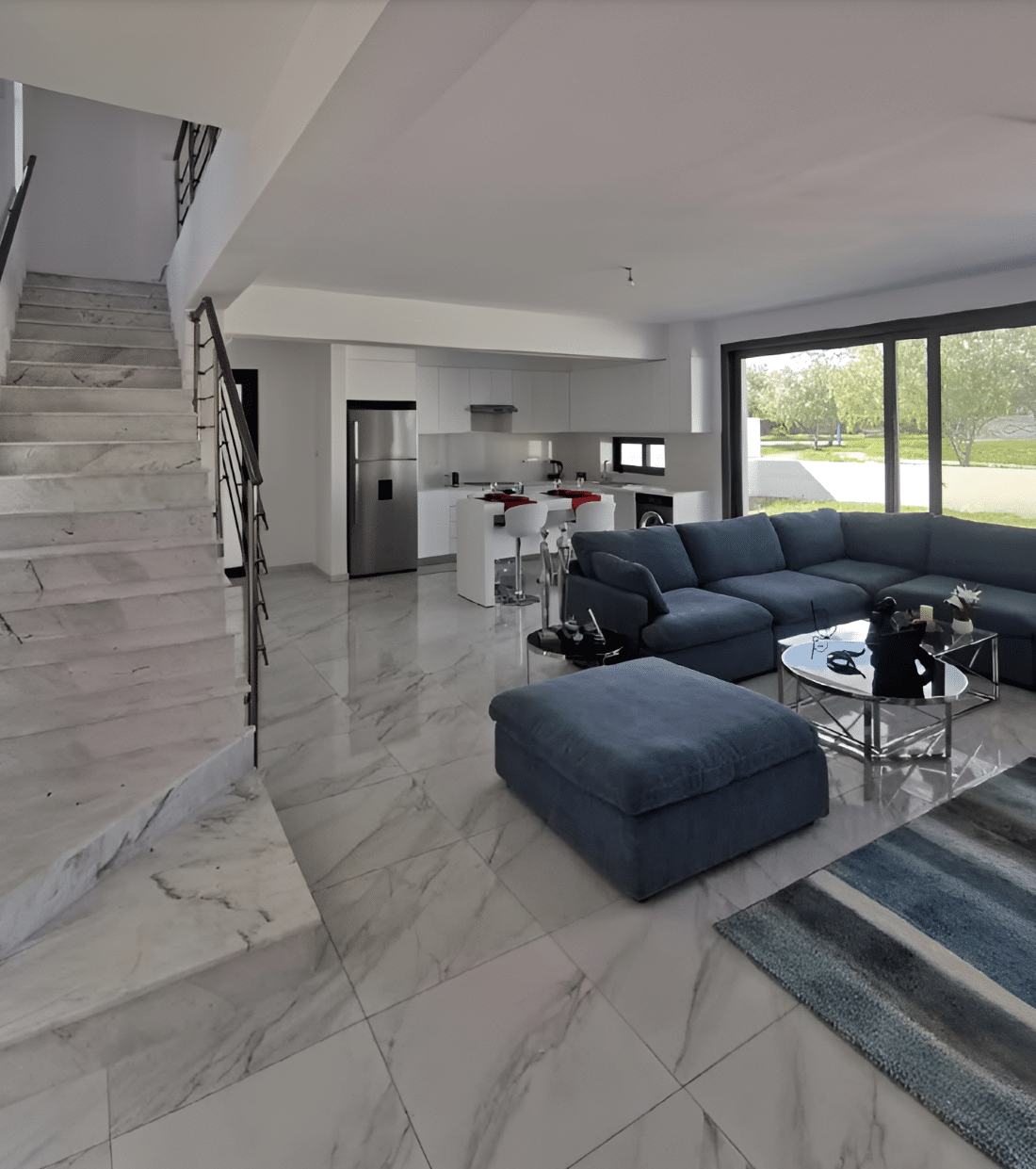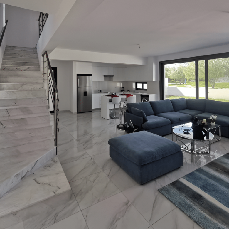 This spacious two-storey house in Agia Fyla, located 250m from the Nicosia-Limassol highway and 80m from Agios Panteleimonas Primary School and Tsirio High School. It features a 360 m² internal area, 45 m² of covered verandas, 242 m² of uncovered verandas, and a 41 m² covered garage.