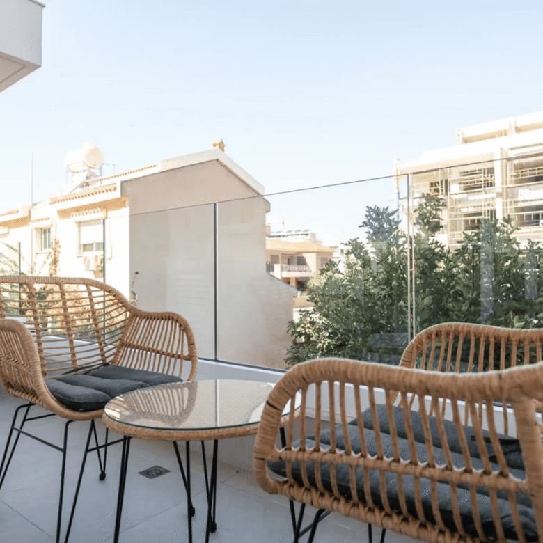This elegant 1-bedroom apartment in Zakaki, Limassol, enjoys a convenient location near top amenities, the Casino Resort, and My Mall. It offers a spacious and stylish living space with one bedroom, an open-plan kitchen and living area, a bathroom, and a large covered veranda.
