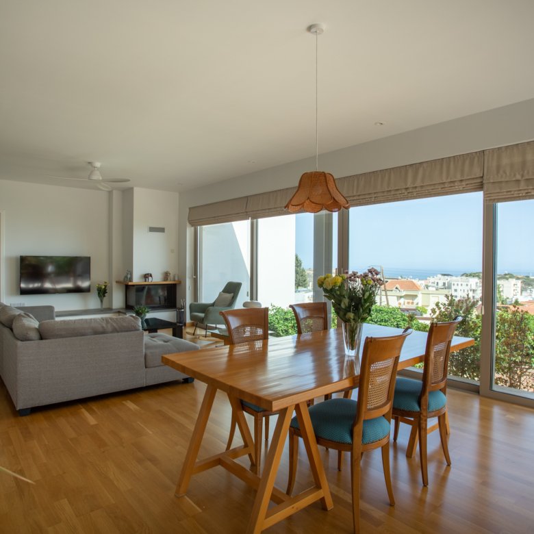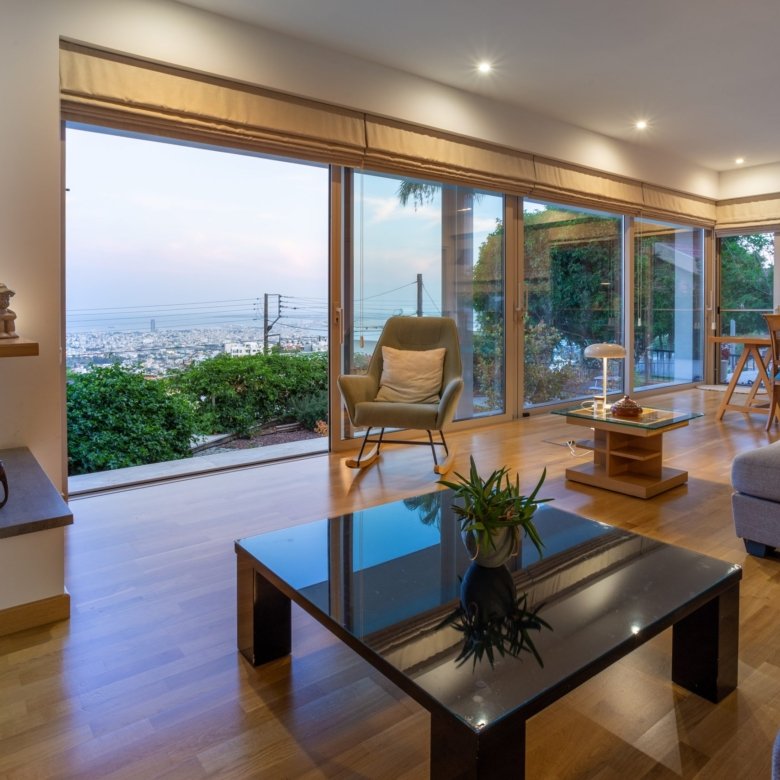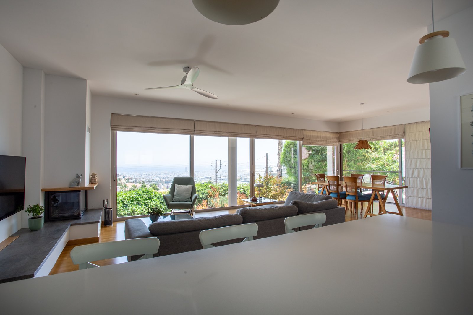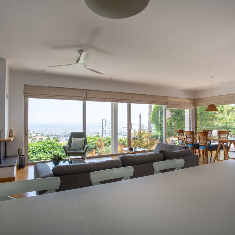 This stylish six-bedroom, two-storey villa in the picturesque Agia Fyla area of Limassol offers breathtaking panoramic views, including a stunning sea view, and is surrounded by lush greenery. The villa features 6 versatile bedrooms (perfectly adaptable as offices or a playroom), 4 WCs (3 full bathrooms), and a sleek, modern kitchen equipped with premium AEG appliances.