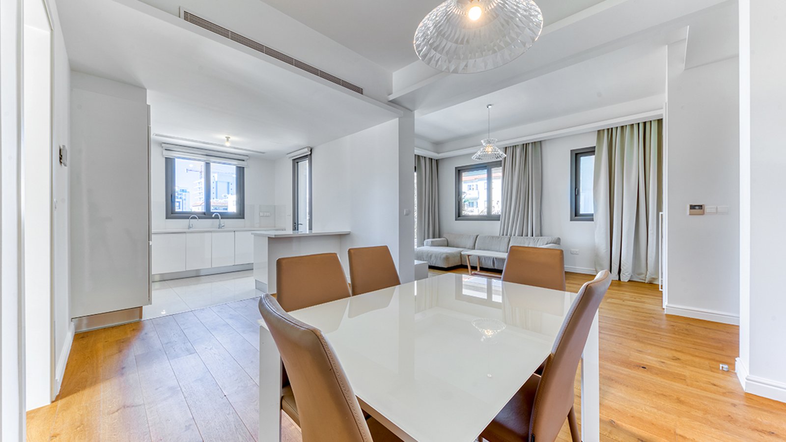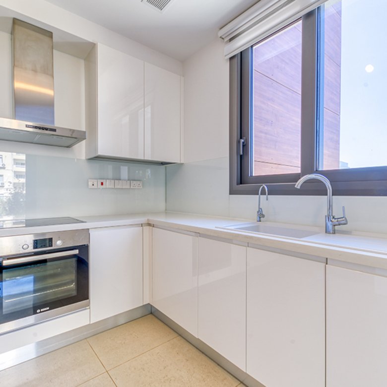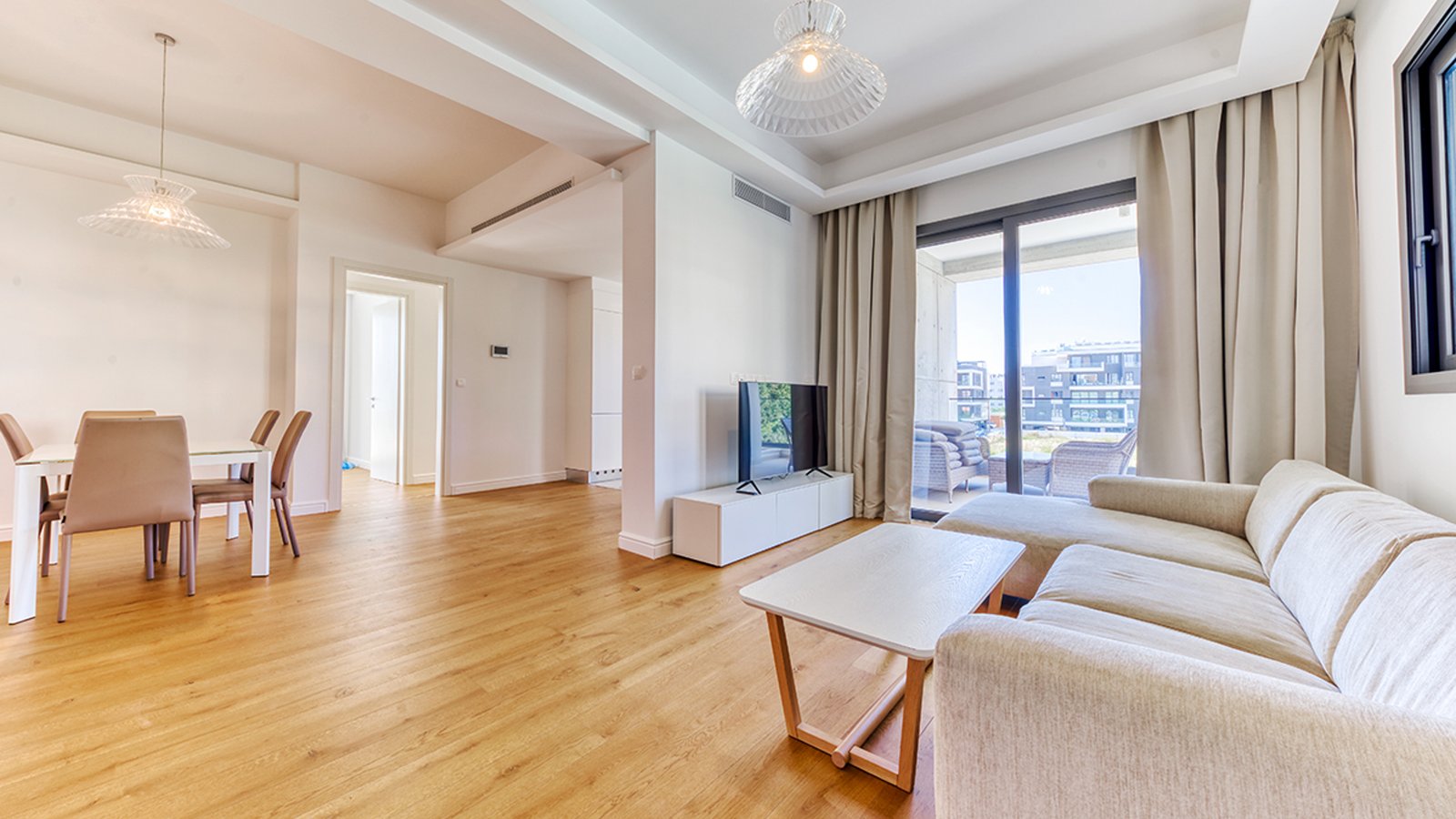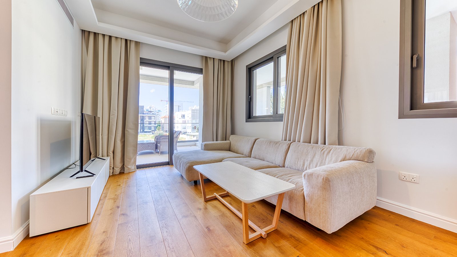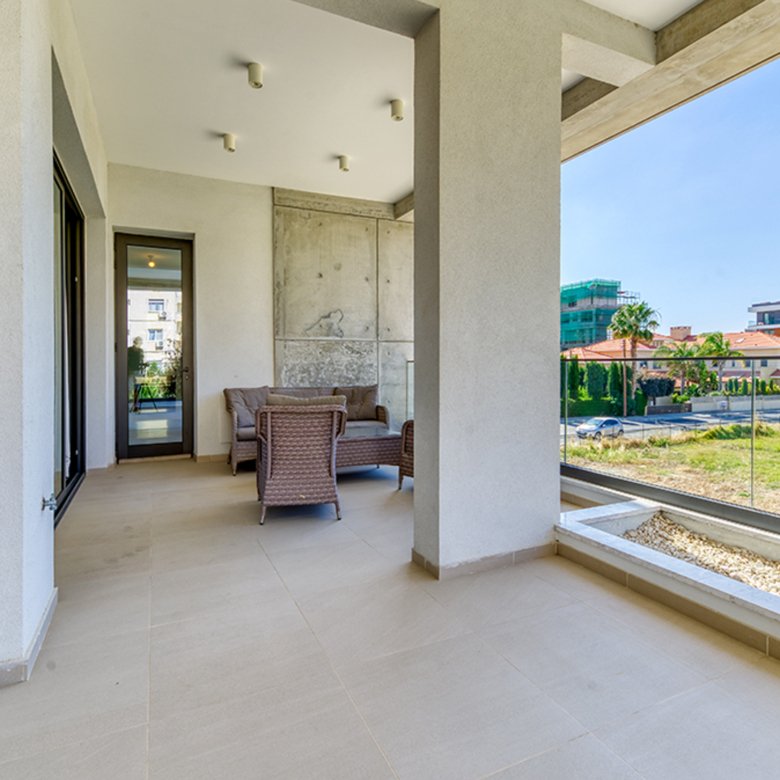 This modern 3-bedroom apartment is located in the prestigious area of Potamos Germasogeia, Limassol, within a gated complex featuring a communal swimming pool and remote-controlled gates.