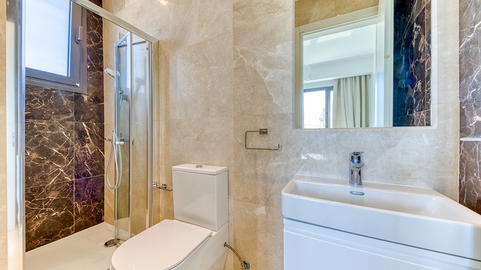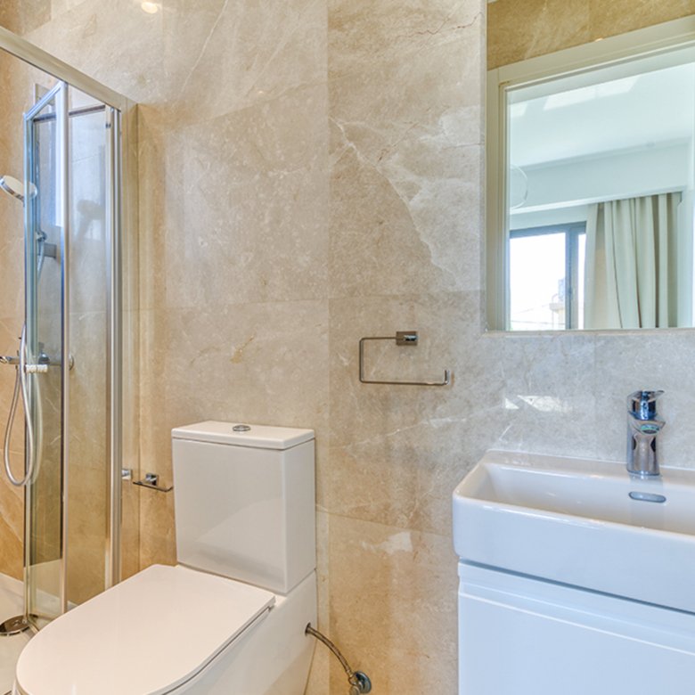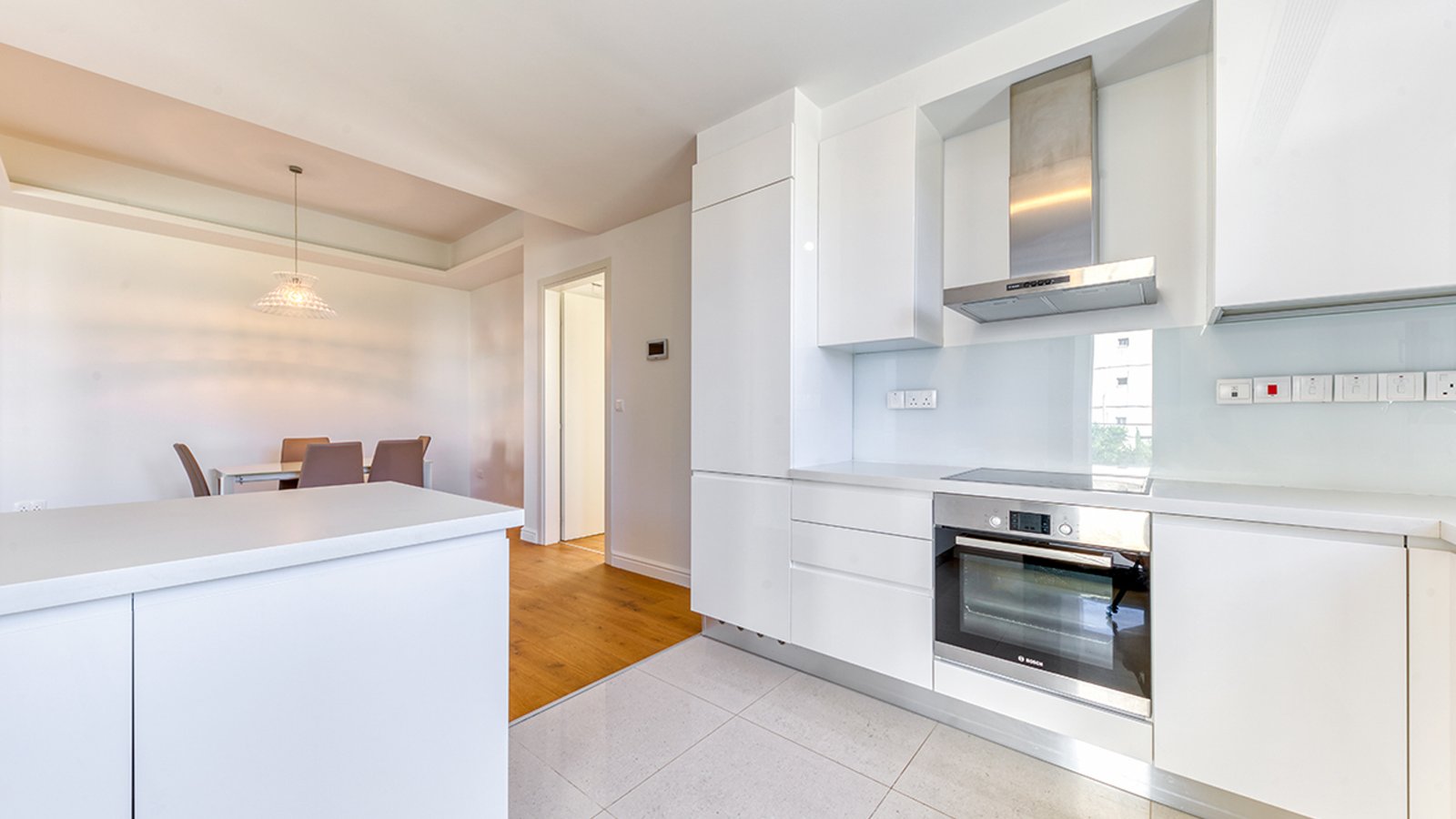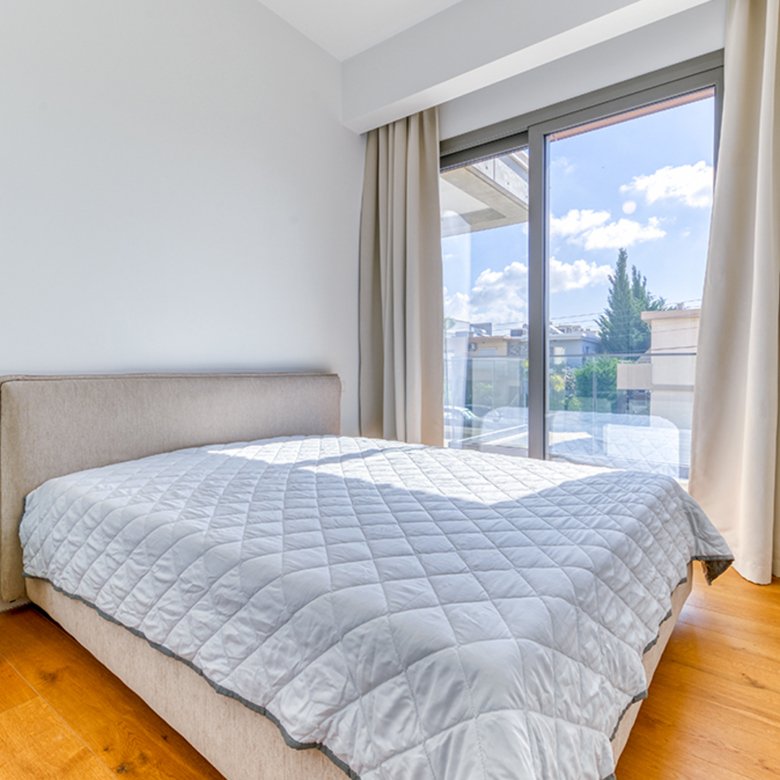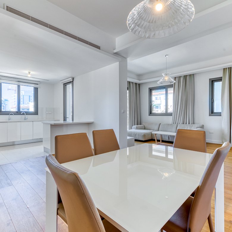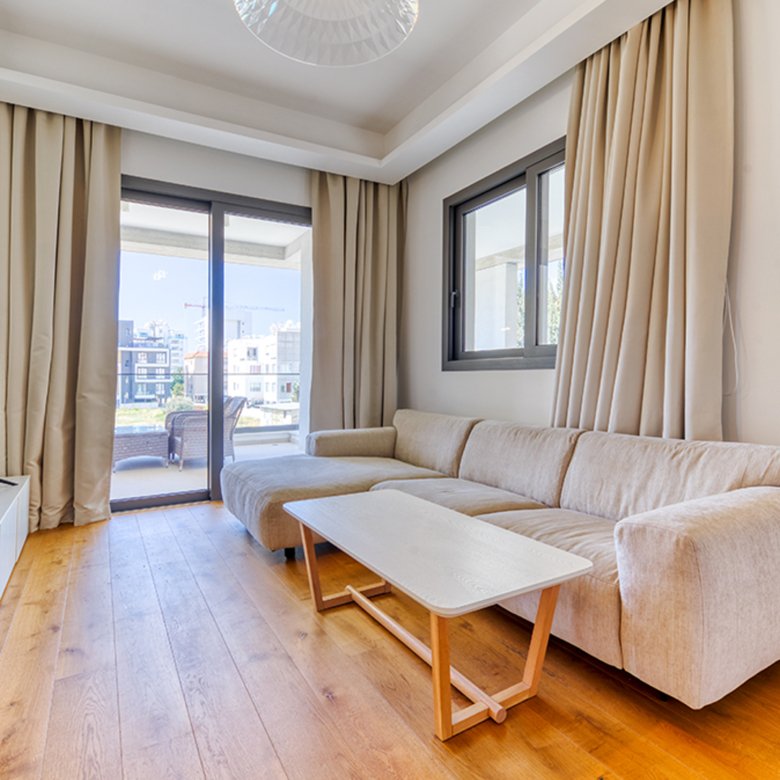 This modern 3-bedroom apartment is located in the prestigious area of Potamos Germasogeia, Limassol, within a gated complex featuring a communal swimming pool and remote-controlled gates.