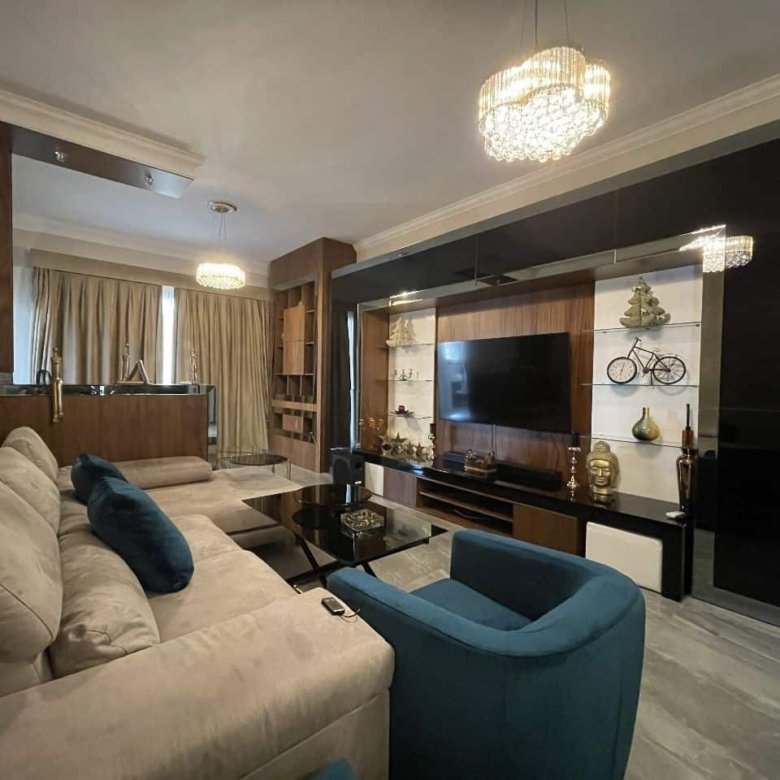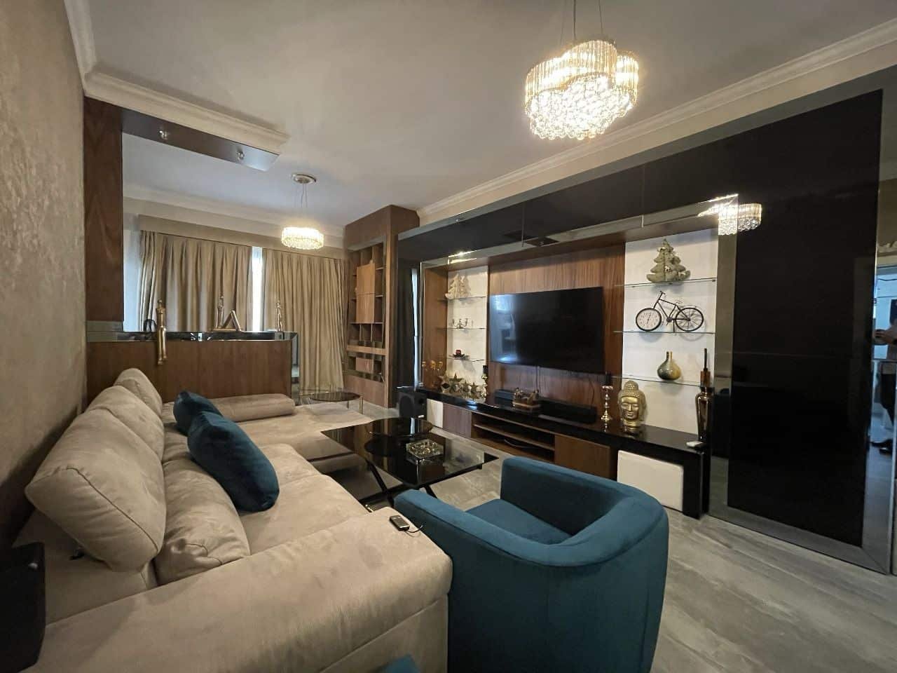 The apartment offers 3 bedrooms, 2 bathrooms, and a fully equipped closed kitchen with Miele appliances. The living room is furnished with a large TV and sound system. Additional features include underfloor heating, a VRV air conditioning system, modern furniture, and high-quality mattresses.