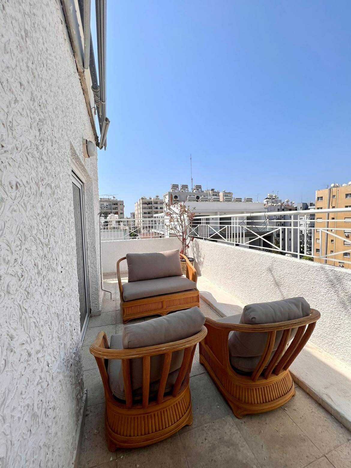 This fully furnished 3-bedroom penthouse in Neapolis, Limassol, is conveniently located close to cafes, shops, supermarkets, and all amenities. It features 3 bedrooms, 2 bathrooms, and 2 spacious verandas.