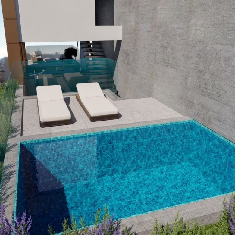 The development will be gated, with controlled access points for both vehicular and pedestrian entrances. The floors above, from one to five, generate two apartments per floor. One 2-bedroom apartment and one 3-bedroom apartment. On the sixth floor there will be a 3/4 bedroom penthouse. On the seventh floor, a roof garden will be offered to the penthouse apartment, including a kitchenette, wc and shower, plunge pool, BBQ facilities, sun lounge and a storage area.
