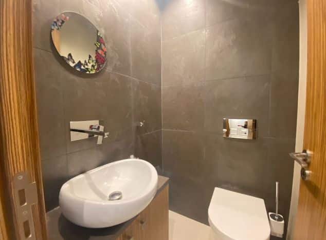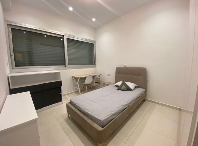 The apartment is fully furnished, providing a stylish and comfortable living space. The complex offers a communal swimming pool, providing residents with a delightful space for relaxation.