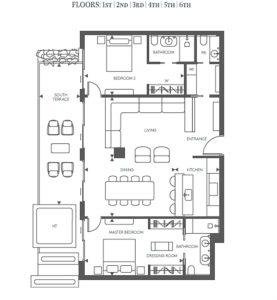 This apartment is located in a quiet area at 200m from the beachfront. It has easy access to both the highway and the seaside road. The building consists of 4 floors, 2 apartments per floor.