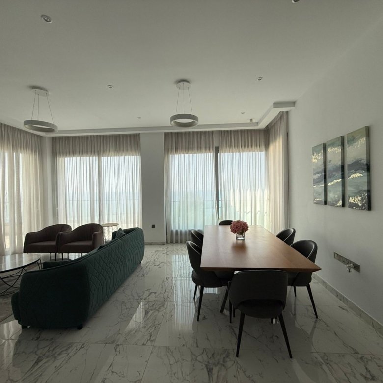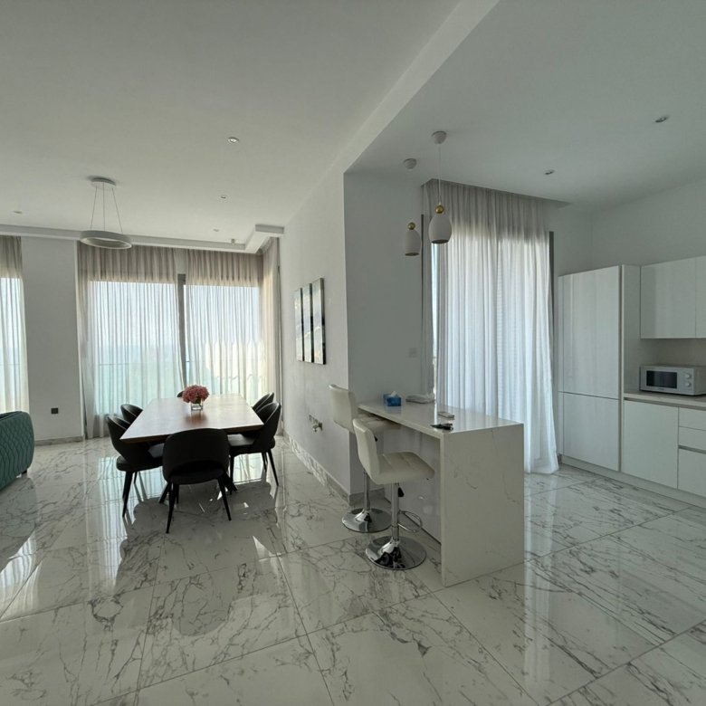 This modern 3-bedroom apartment is located in the Mouttagiaka tourist area of Limassol, just 100 meters from the beach and within walking distance to all amenities, including shops, cafés, resorts, and supermarkets. Situated in a contemporary 11-storey building, residents enjoy access to a communal swimming pool, tennis court, gym, and sauna.
