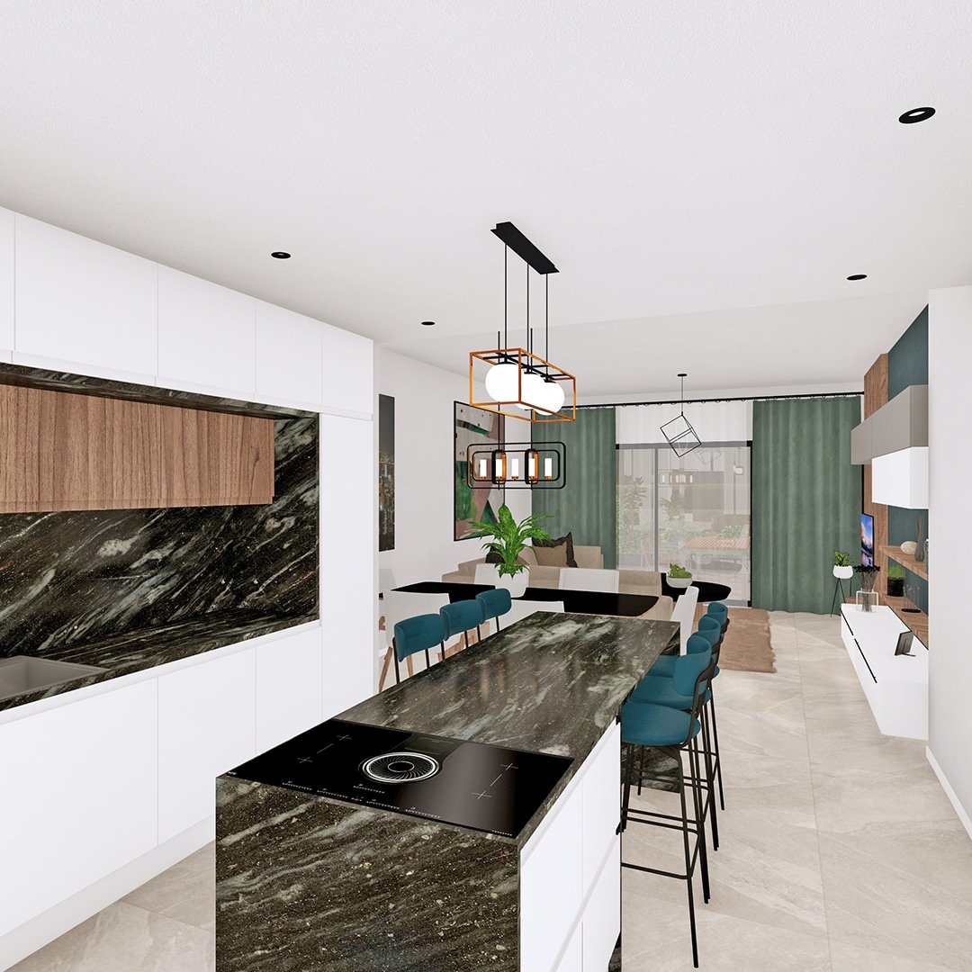 The development is located in Germasogeia area overlooking Limassol’s coastline. It consists of 10 luxurious modern apartments, each with covered parking out of which two flats (1 two-bed and 1 three-bed) are situated on the ground floor with their own private gardens and covered parking.