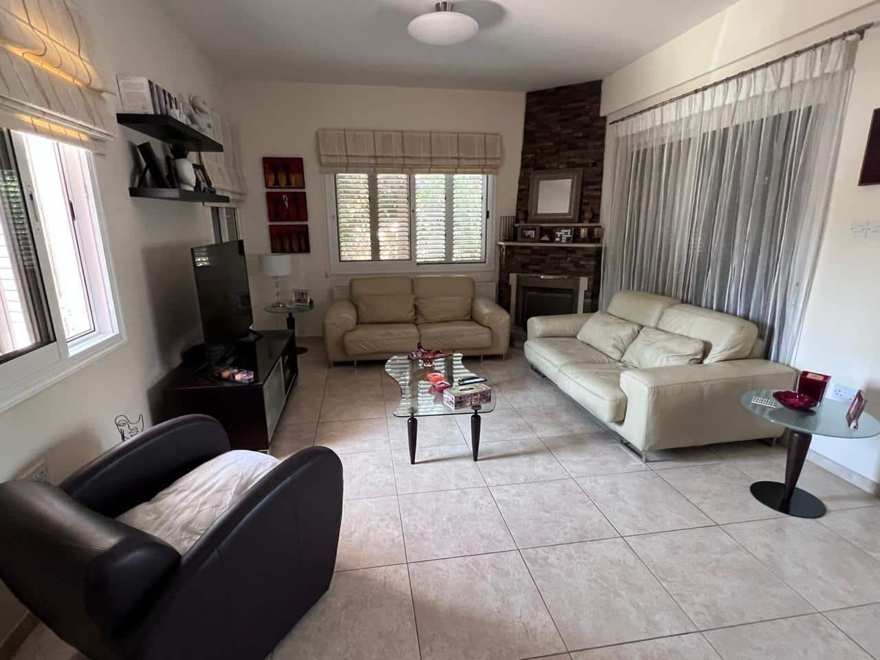 This spacious 3-bedroom house in Pareklisia, Limassol. Nestled in a serene and friendly neighborhood, it boasts breathtaking mountain views. The home features two well-appointed bathrooms and an en-suite shower with WC in the master bedroom.