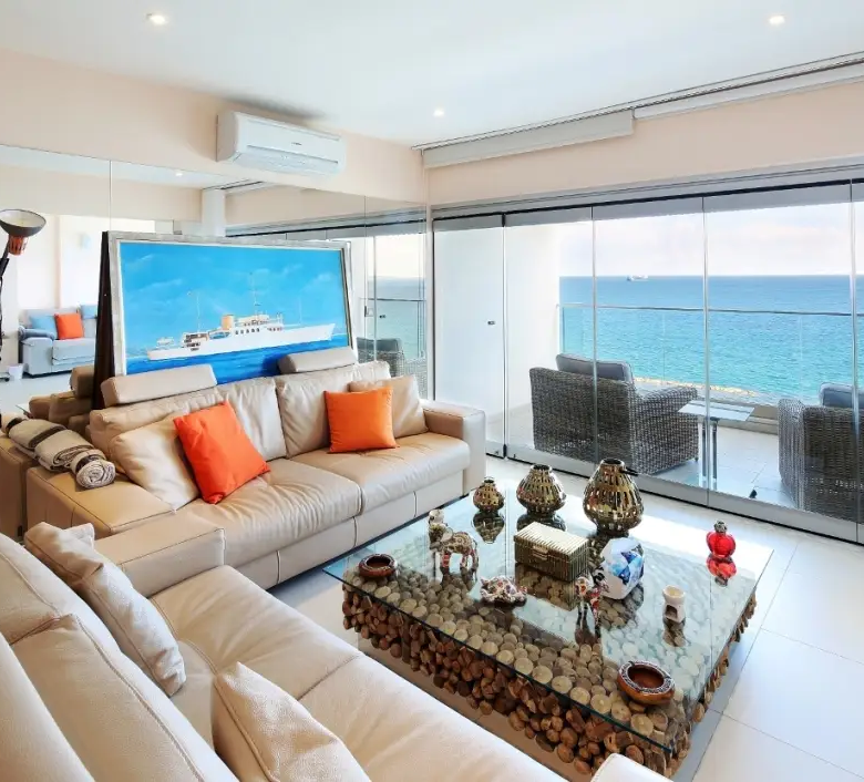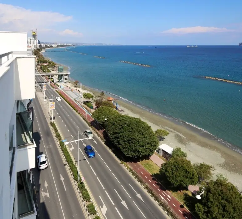 This beautiful 3-bedroom penthouse apartment located in Agia Trias, in the heart of Limassol, directly opposite the Blue Flag sandy beach and Molos Park. This prime central residence offers an exceptional lifestyle within walking distance to shops, restaurants, and all city amenities, while enjoying uninterrupted ocean and city views.