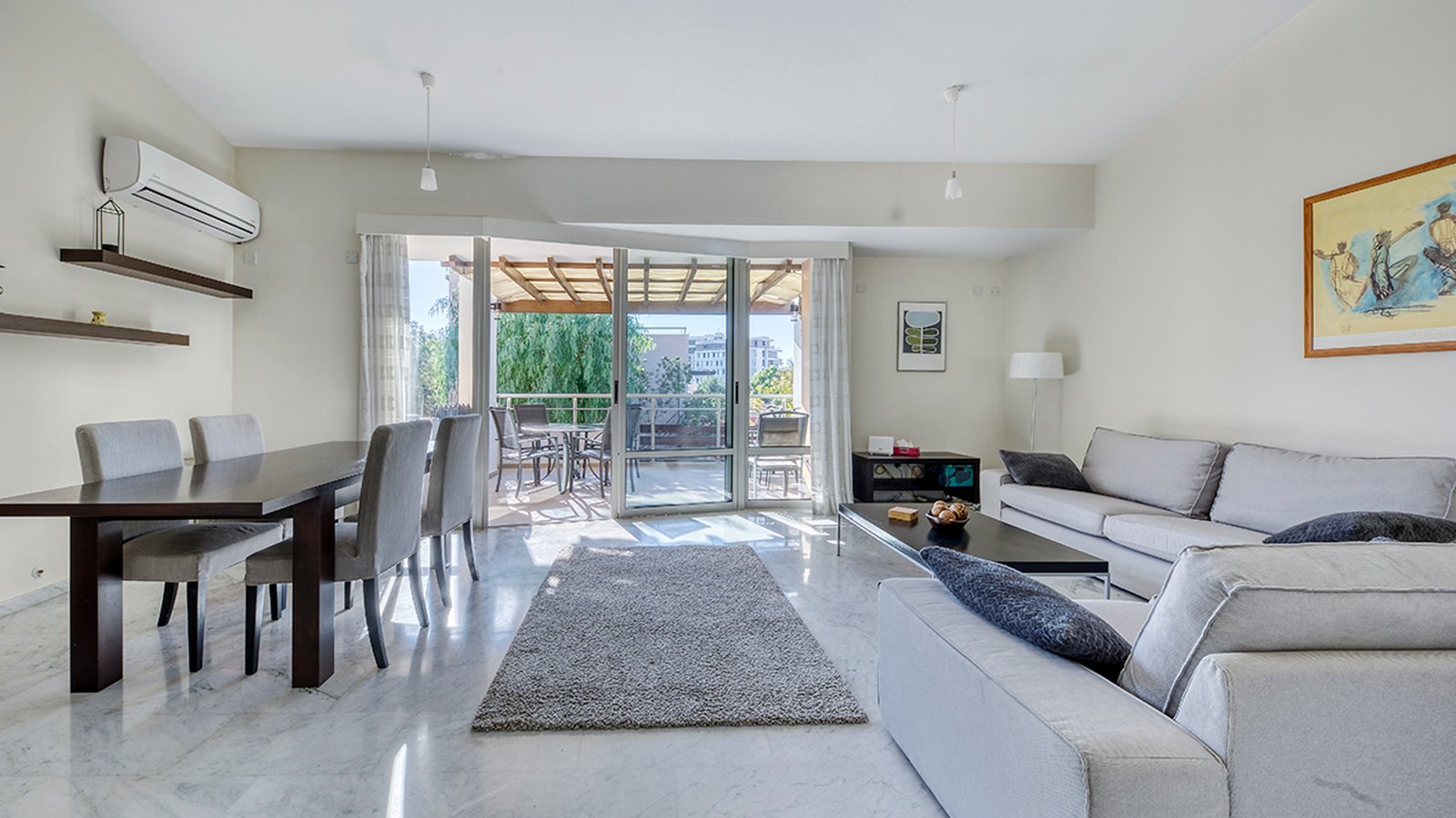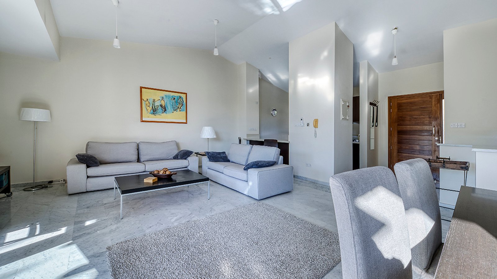 This luxury 3-bedroom townhouse is located in Agios Tychonas, Limassol, close to Atlantica Bay Hotel, resorts, and amenities. Situated in a secure gated complex just 150 m from the sea, the property features partial sea views, 2 communal swimming pools, a gym, and a kids’ playground. It comes fully furnished with A/C units, marble floors, an Italian kitchen, all appliances.