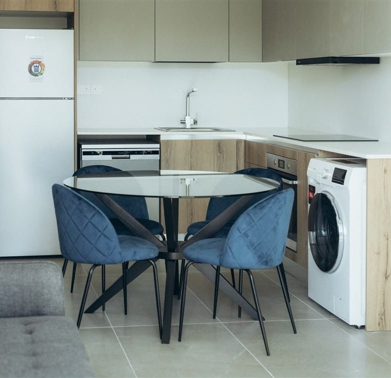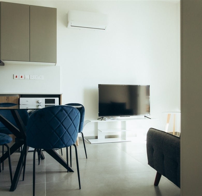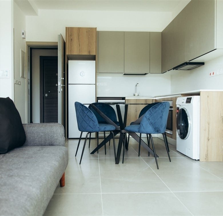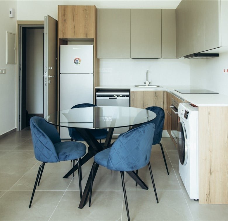 This brand new and very bright, fully furnished and equipped one bedroom apartment, located in a peaceful and quiet area of Zakaki, near the New Port.