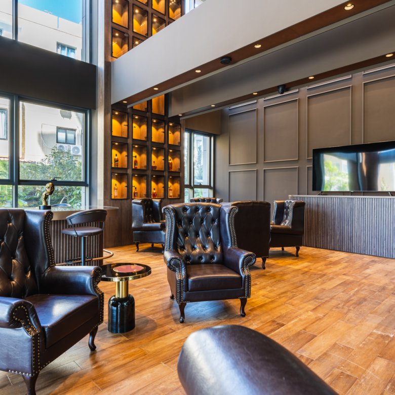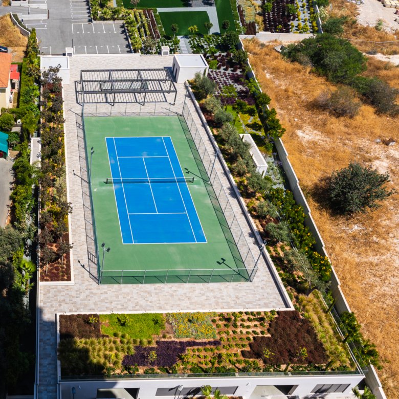 The building features a sophisticated lobby with reception and concierge services, as well as an IT room, cigar lounge, and laundry area. The complex also offers spacious outdoor amenities, such as a landscaped garden, swimming pool, and tennis court.