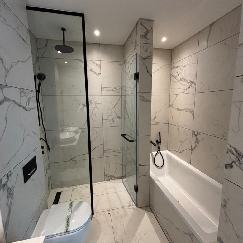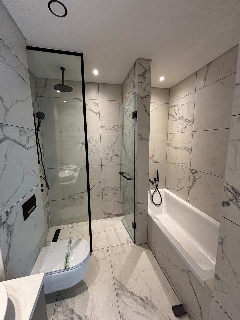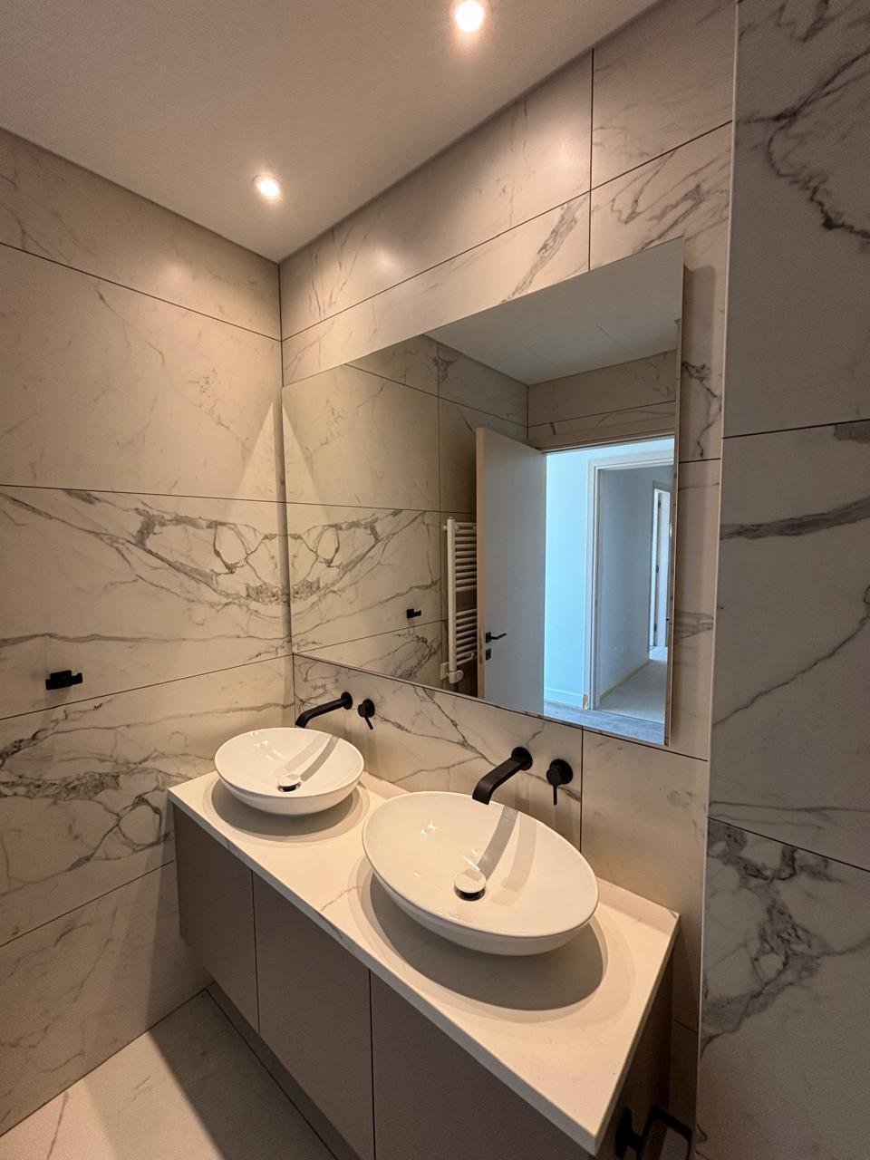 The apartment features 2 bedrooms, 2 bathrooms, and an open-plan living area with kitchen. It is located close to the main project square with full infrastructure.