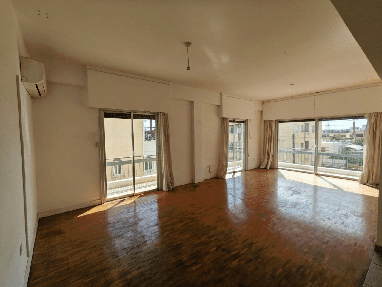 A spacious two-bedroom apartment in the heart of Limassol, situated in the Petrou & Pavlou area, between Spyrou Kyprianou and Makarios Avenue. The apartment features an internal area of 115 square meters, complemented by 30 square meters of covered balcony space. Recently upgraded with new electrical wiring and plumbing, the property also includes exclusive rights to construct two additional floors on the roof.