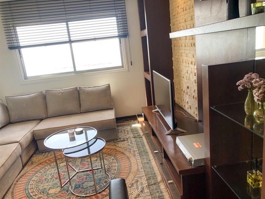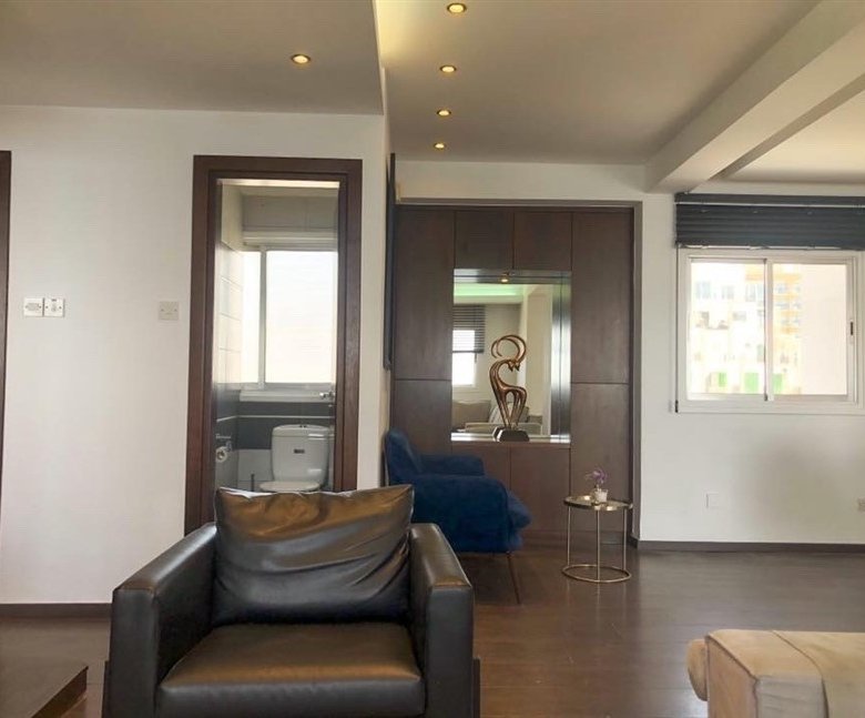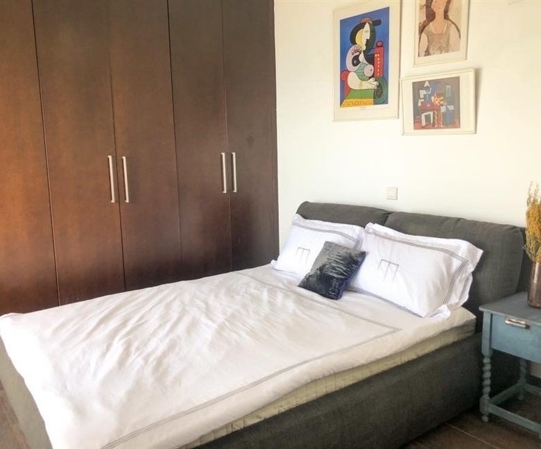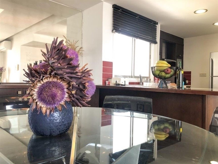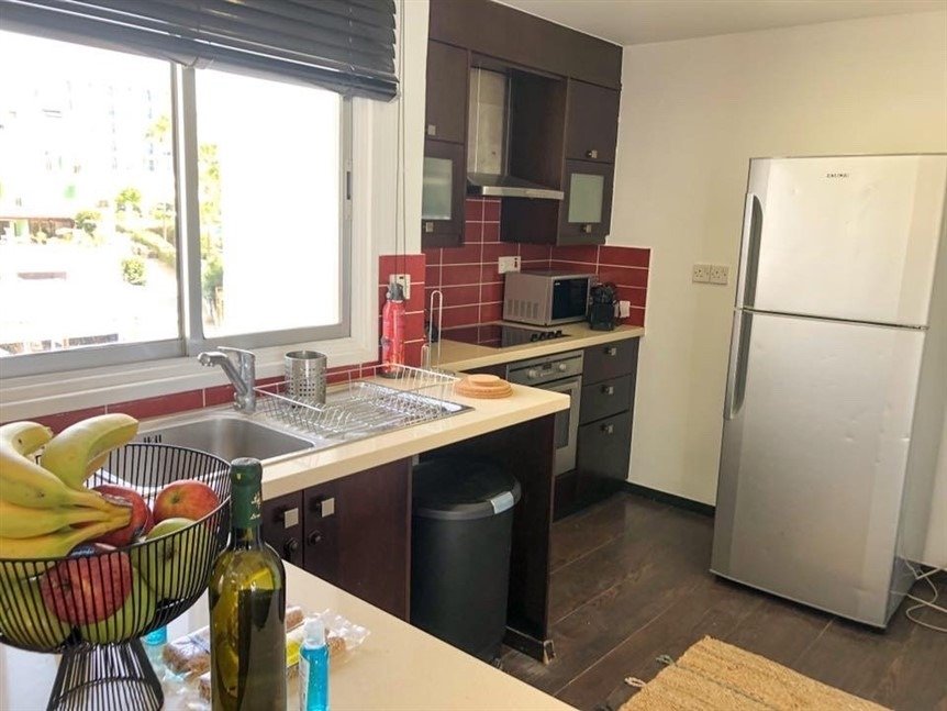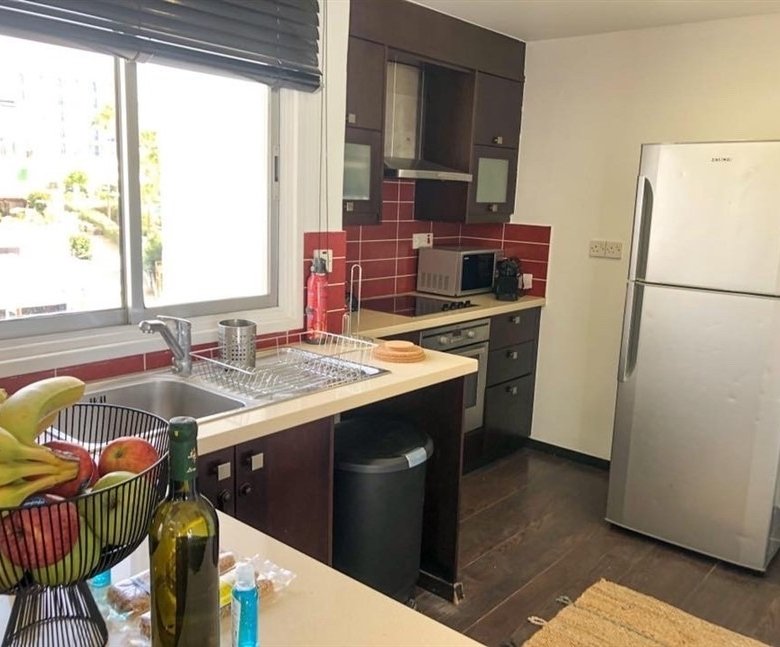 The apartment is fully furnished and comprises an open living room, dining area, and kitchen, 2 good-sized bedrooms, 1 main bathroom with shower, and a guest toilet.