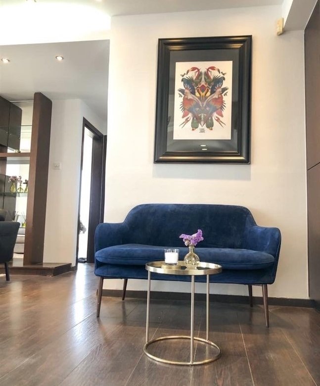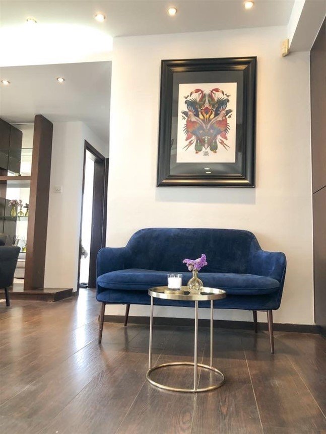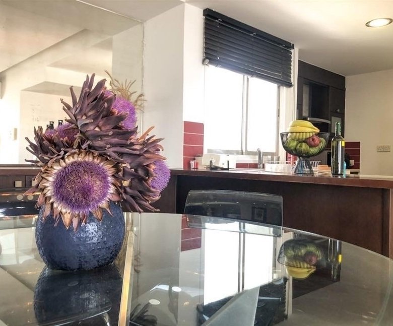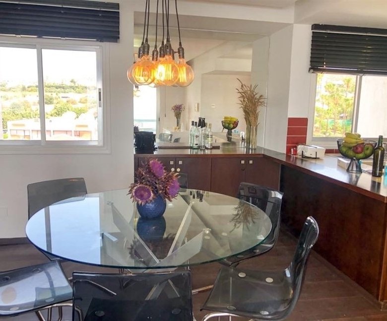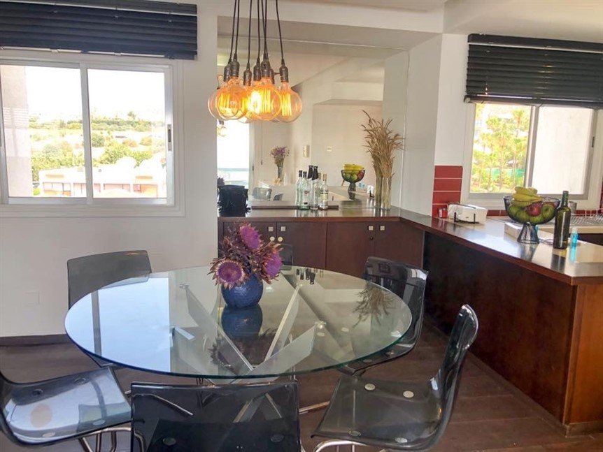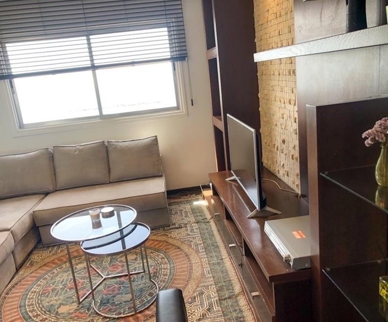 The apartment is fully furnished and comprises an open living room, dining area, and kitchen, 2 good-sized bedrooms, 1 main bathroom with shower, and a guest toilet.