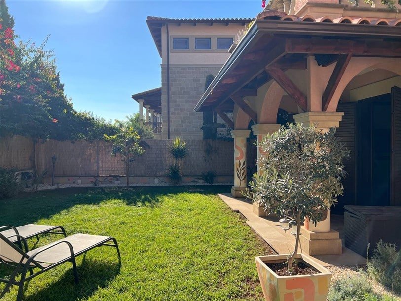A gorgeous veranda and a green backyard are indispensable bonuses to other advantages of this apartment and a harmonious continuation of it. The backyard is hidden from curious looks by a high fence.