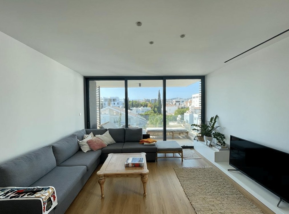This penthouse located in a prestigious and quiet residential location Agios Nicolaos in the center of the city, with easy access to the highway and 1 km from the sea. It consists of 2 bedrooms, 2 bathrooms, a living area combined with the kitchen, a spacious veranda, and a roof garden with jacuzzi.