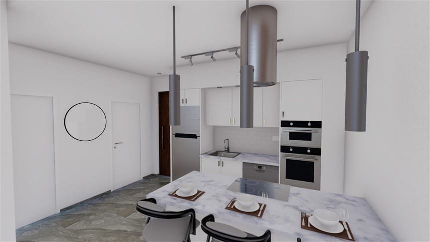 All apartments have a modern concept with a large open layout, custom-made kitchen cabinets, built-in wardrobes, large double-glazing windows and much more.