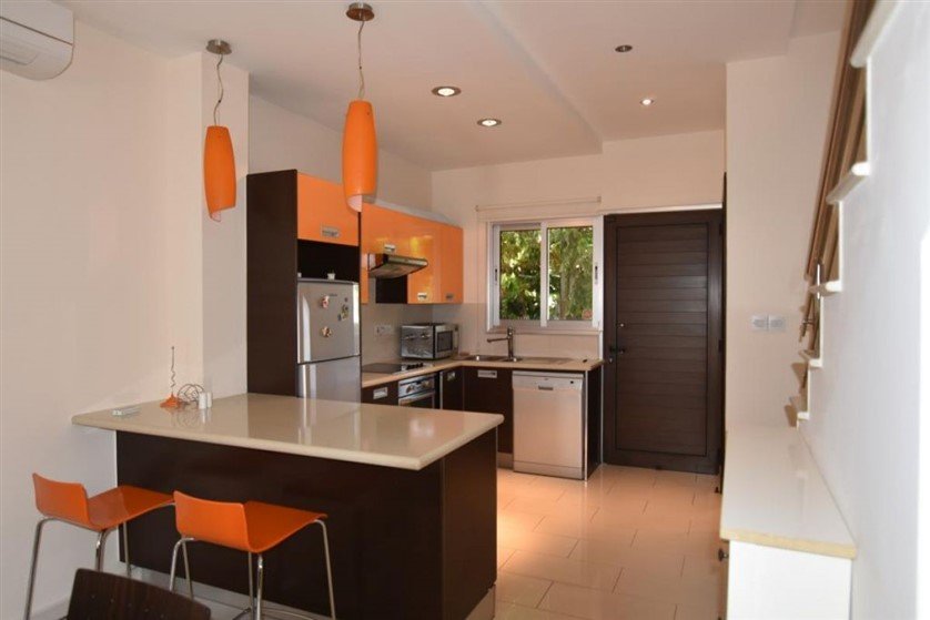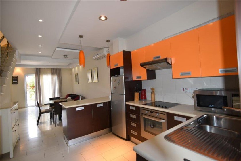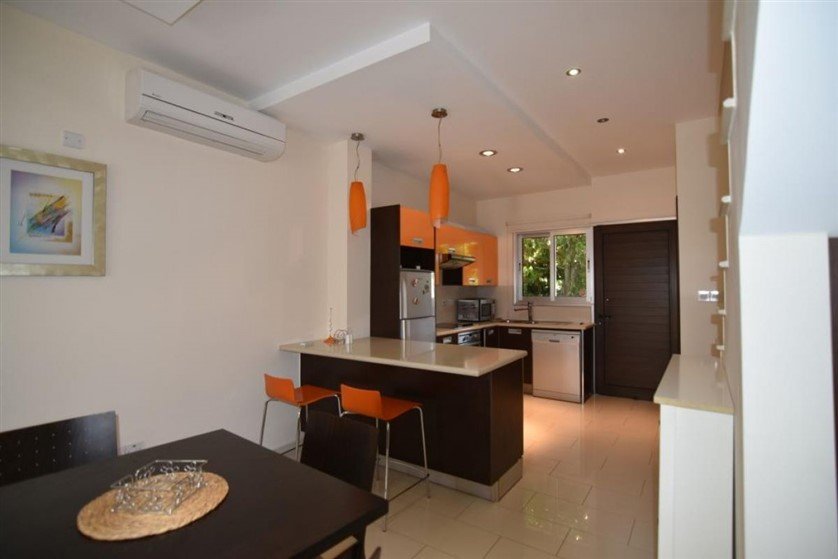 The house is fully furnished, with all electrical appliances, satellite TV, Plasma TV in every room, and a security alarm. On the outside, there is a communal swimming pool.