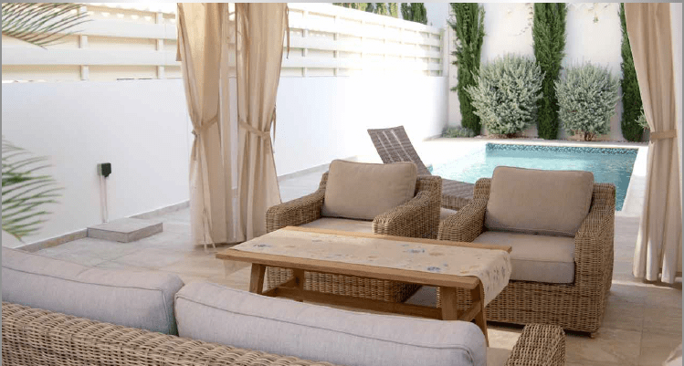 A comfortable, inviting, and full-of-style living space that is suitable for enjoying family time and entertaining loved ones. Just a balcony door away lies the lovely patio area where you can enjoy Cyprus’s warm sunny days next to your own private swimming pool.