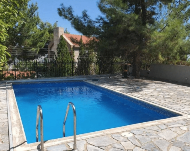 There is access to each respective pool area and a staircase into each house. At the front of each house, the pool area has a veranda and a small shower facility. Steps are leading up to the rest of the house.