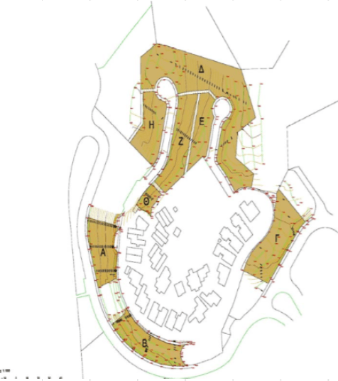 The extent of the unutilised building density is 5,877sqm and can be built within the plots that correspond to the unutilised area. The wider area consists mostly of empty parcels of land and some residential developments.