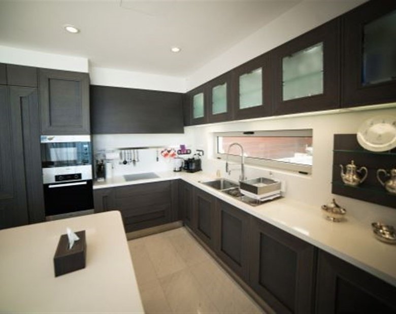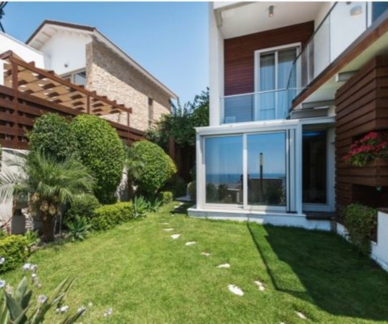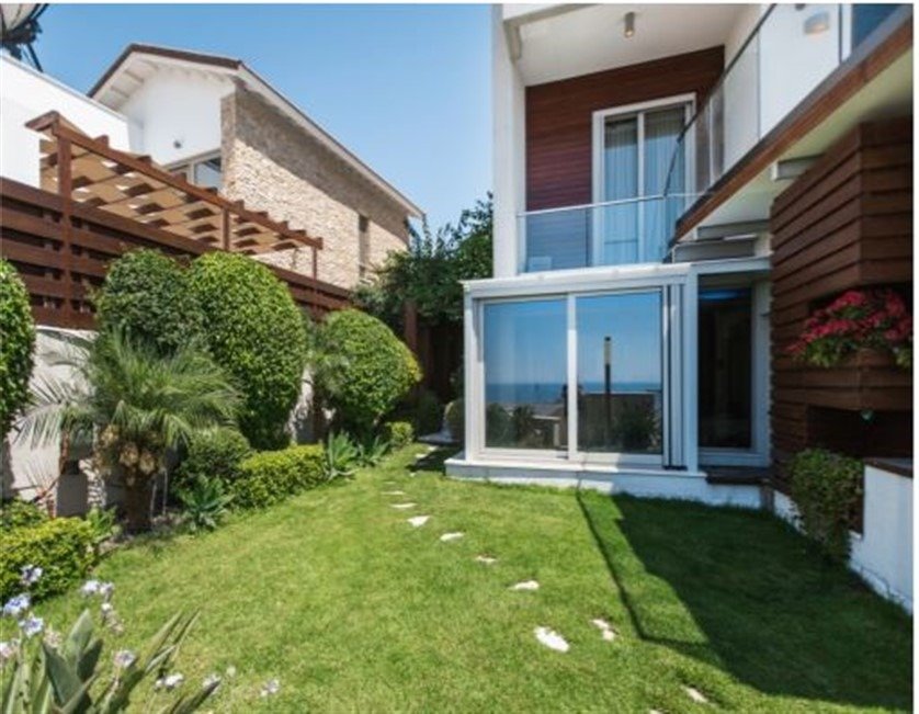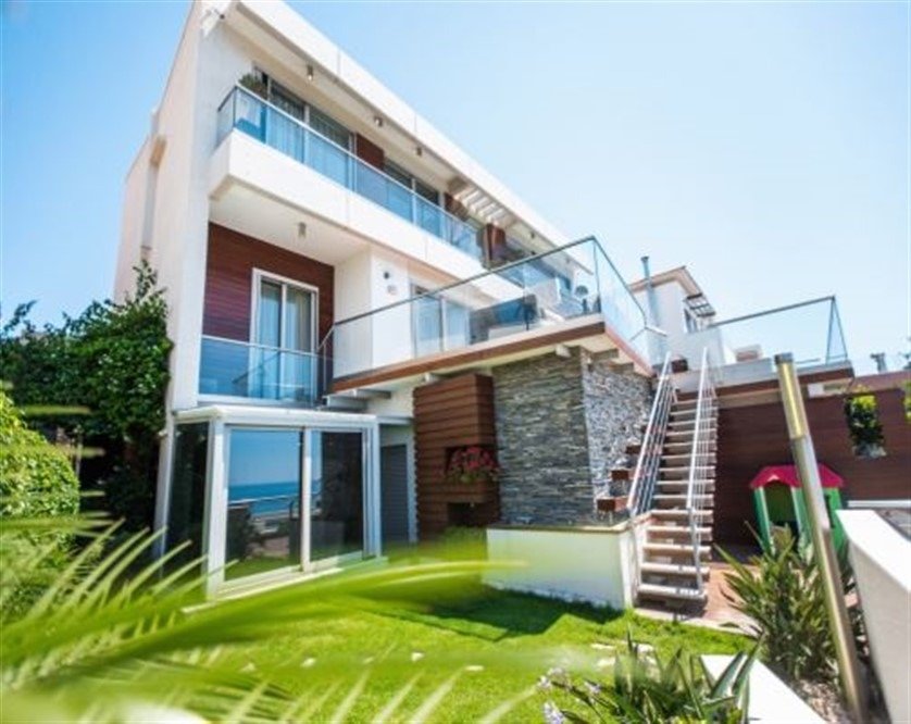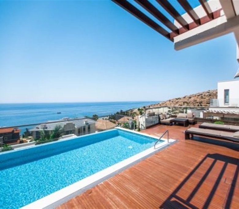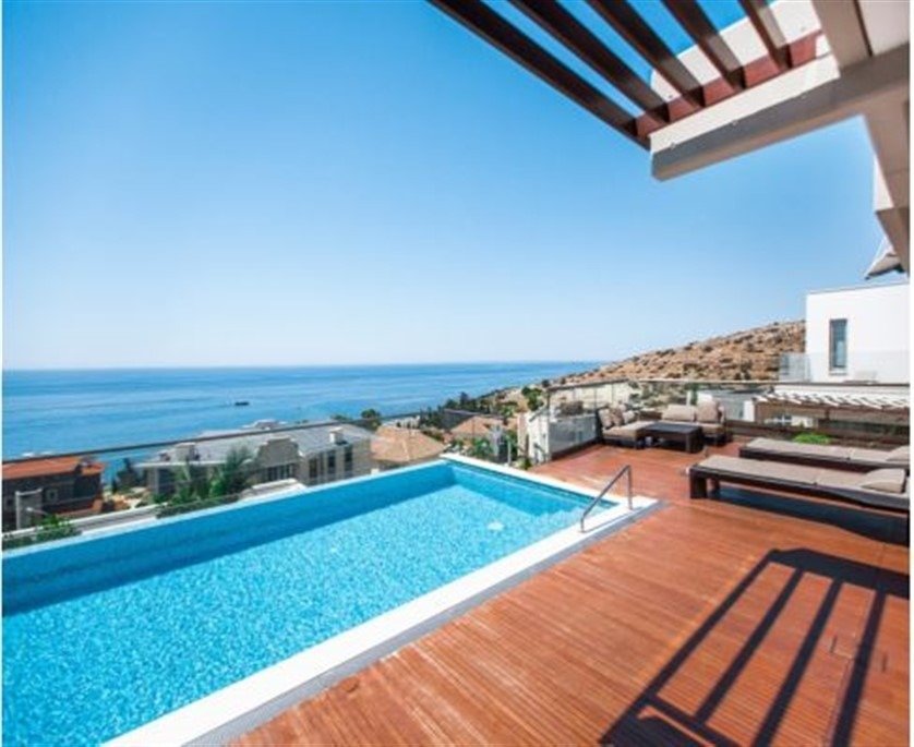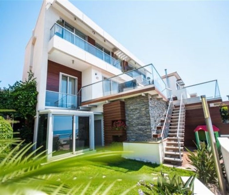 The seafront location guarantees uninterrupted panoramic sea views featuring a private garden with a terrace and infinity edge swimming pool.