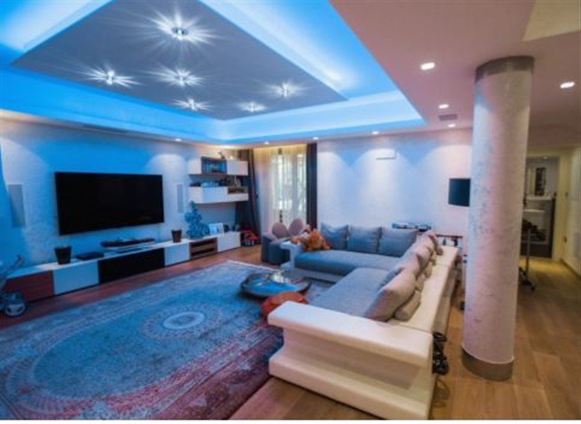 The Basement Level features an additional Living Room space, a Mini Kitchen, a Laundry Room, a Sauna with a Steam shower, a Gym facility, a Guest Room with a bathroom and direct garden access.