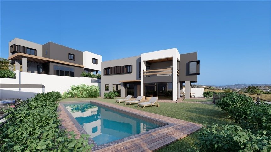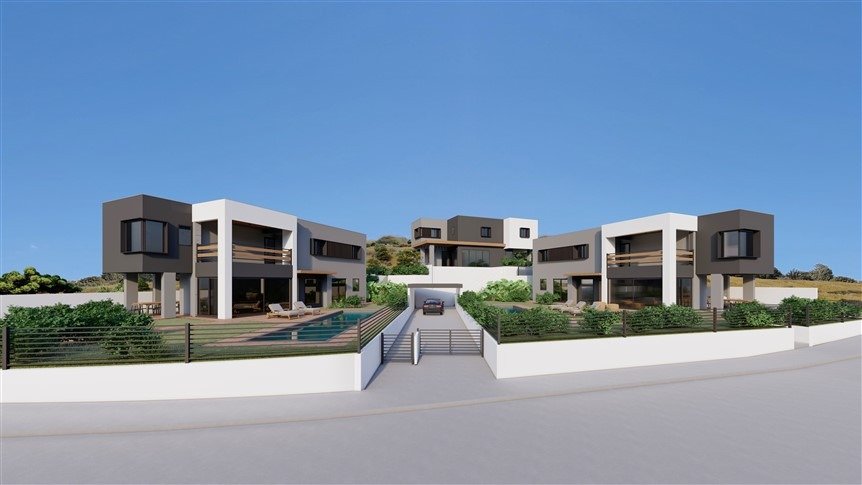 These two beautiful villas of modern design are located in the peaceful location of Parekklisia and provide their residents with breathtaking views of the mountains and the Mediterranean Sea.