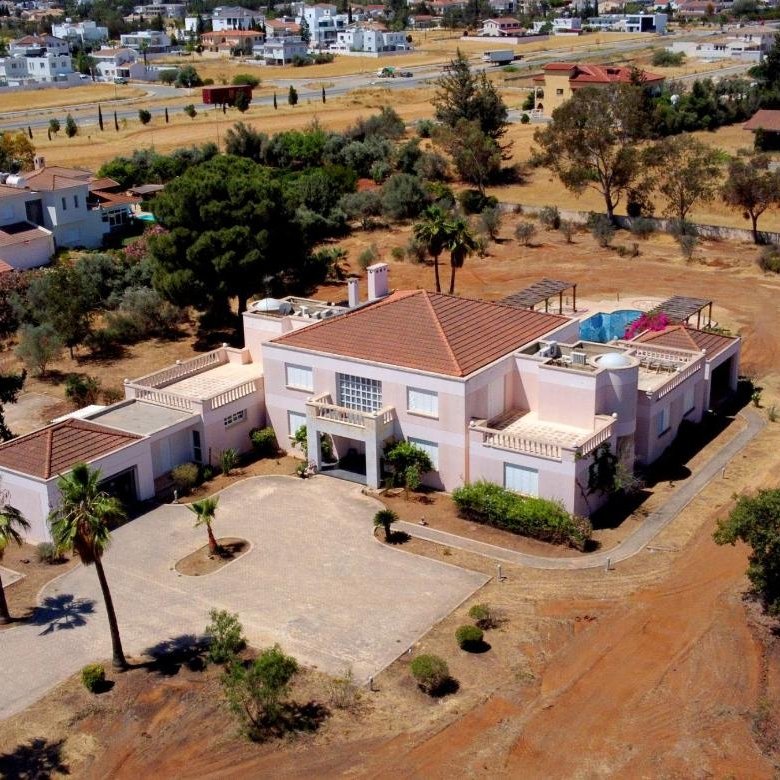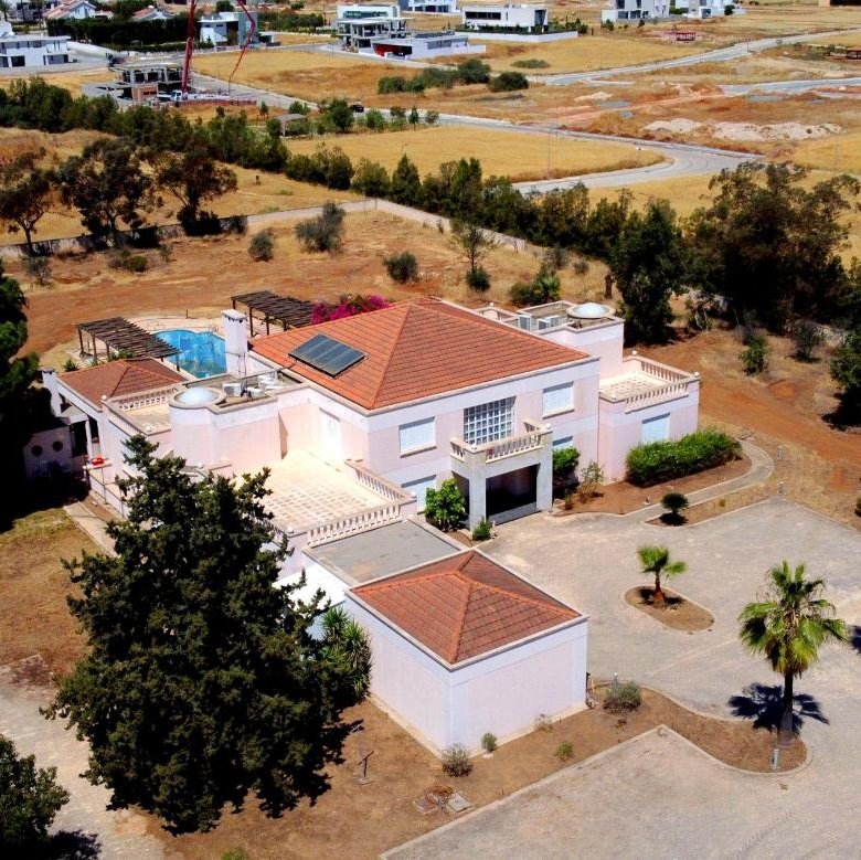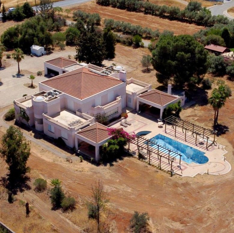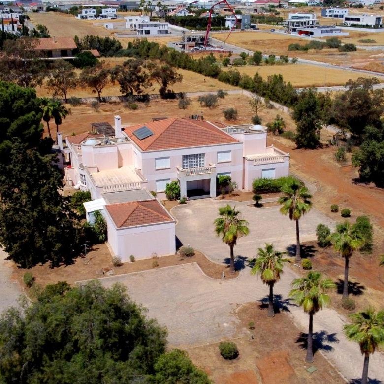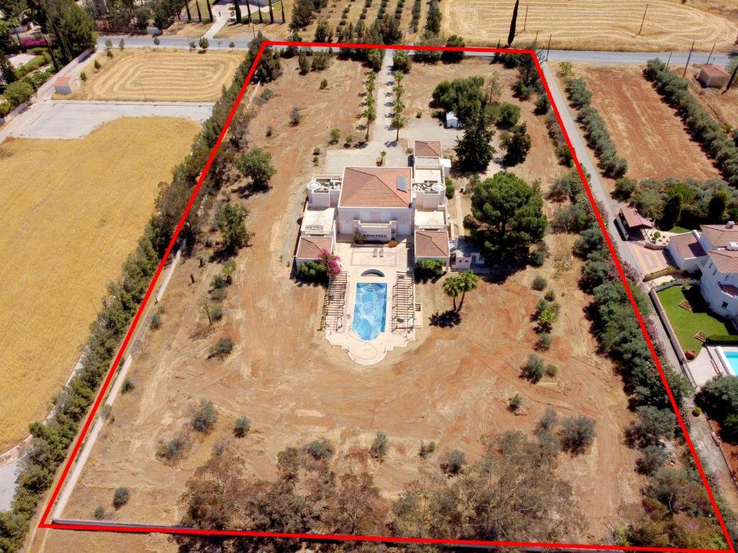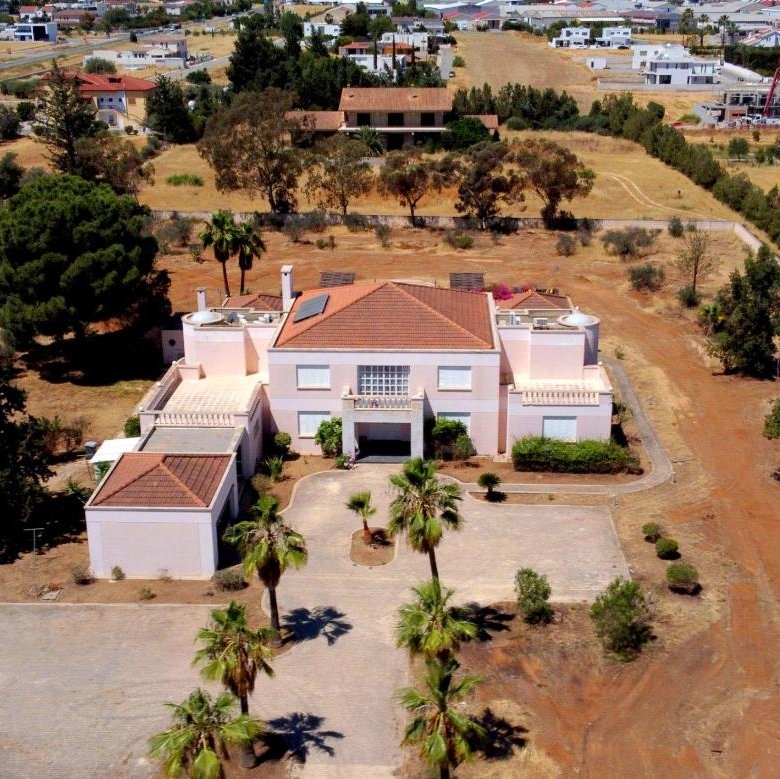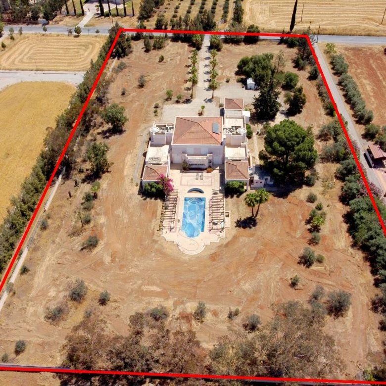 It is located 1.6 km from the Nicosia-Limassol highway and 730 m from the industrial area of Geri. The house has a total covered area of 740 m2 and it is built within a land area of 11.787 m2. The field benefits from an 85 m road frontage along its eastern border and has a depth of 145 m.