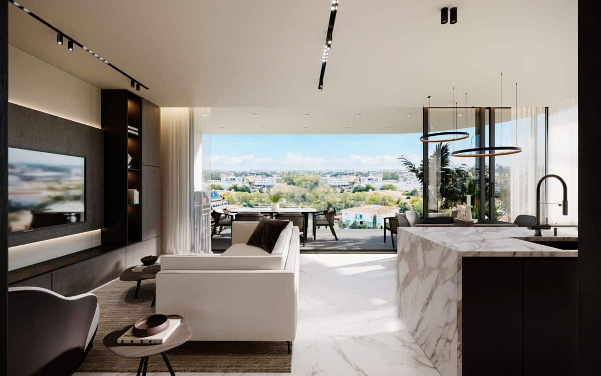 This exclusive development is located in the tranquil surroundings of Engomi, Nicosia. This gated community is designed with the highest standards of comfortable living, modern design, high-quality materials, impeccable architecture, and eco-friendly practices. Truly, it will be a “city within a city.”