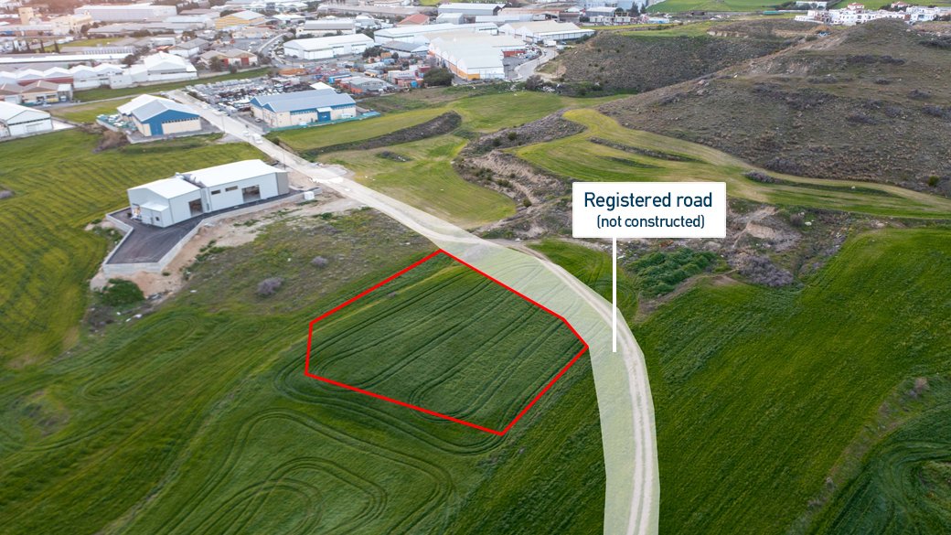 The asset is a field in Dali. It is located in Dali/Nisou Industrial area, 1,2km from the junction between old Nicosia/Limassol road with Tefkros Anthias street. The asset has an area of 2,744sqm. It is adjacent to a registered road not yet constructed (Pentelikou street) with a frontage of 57m. It offers very good access to Nicosia and the other cities.