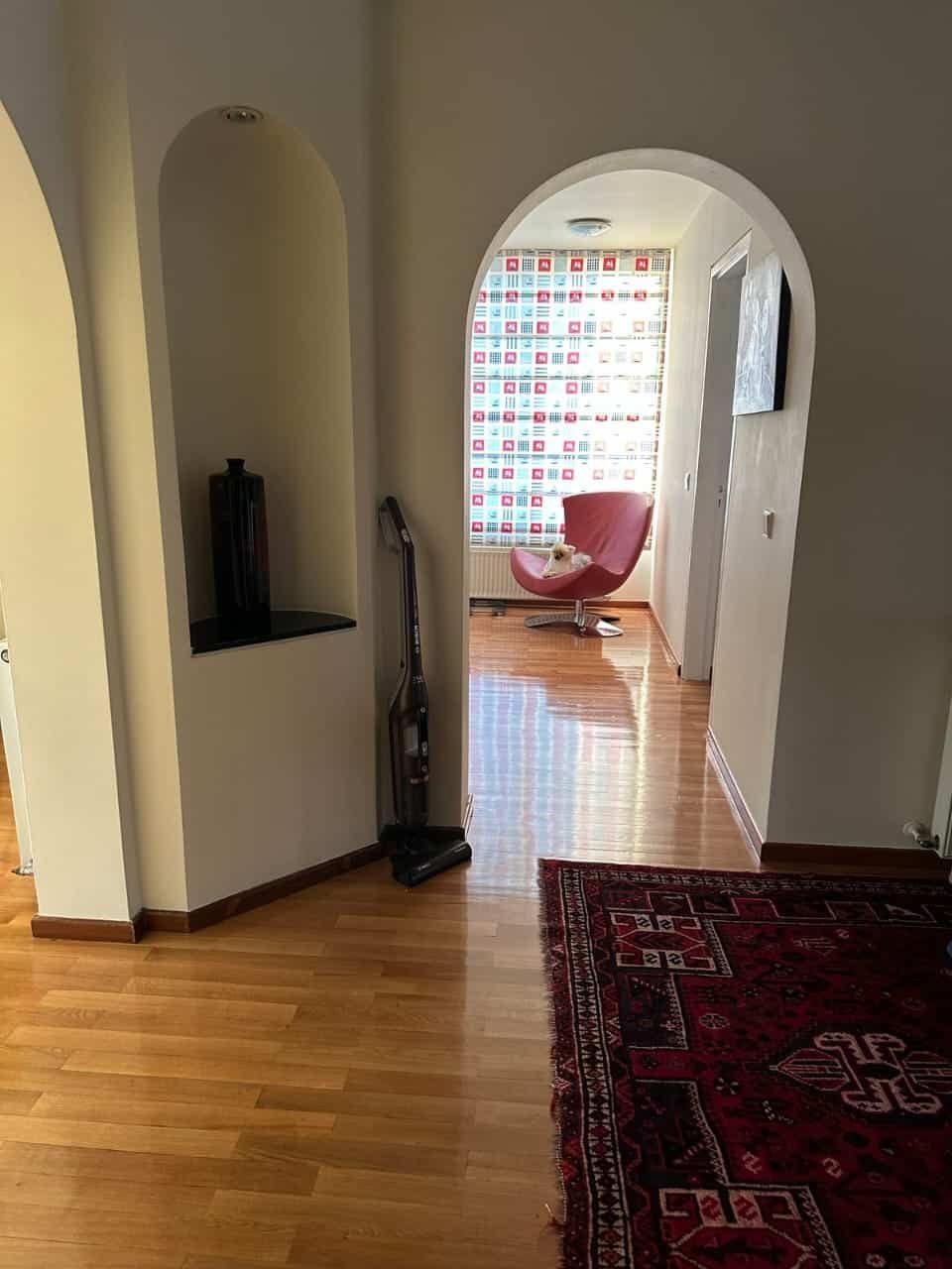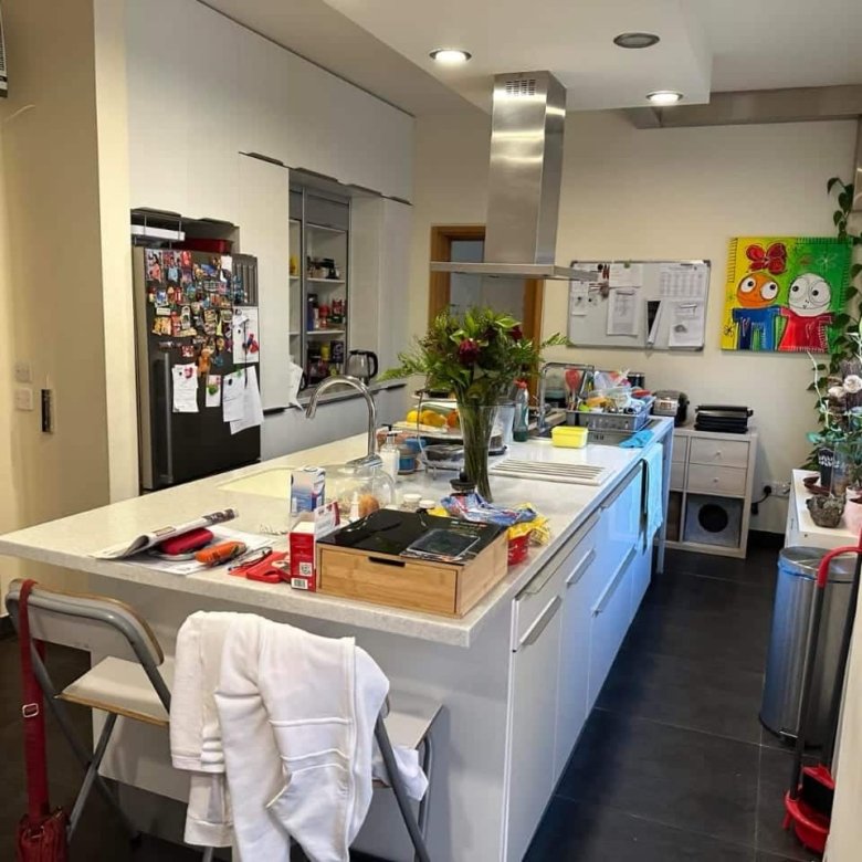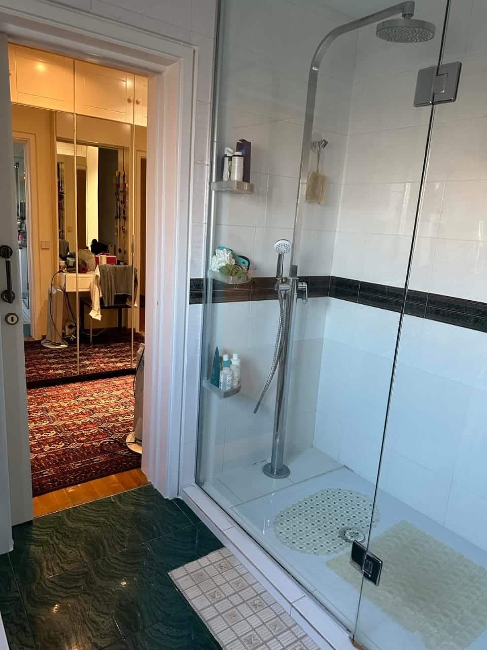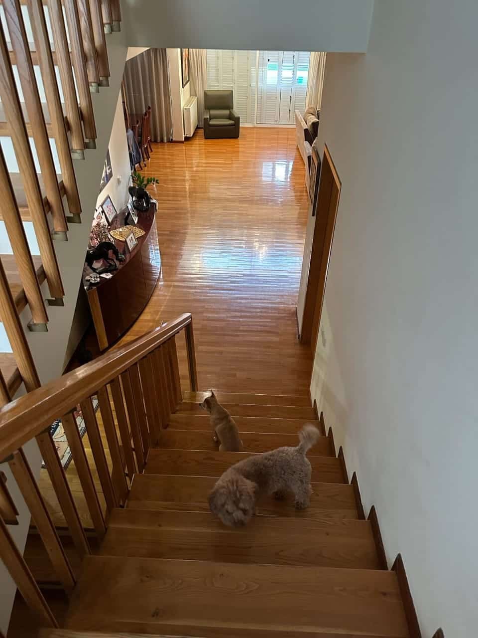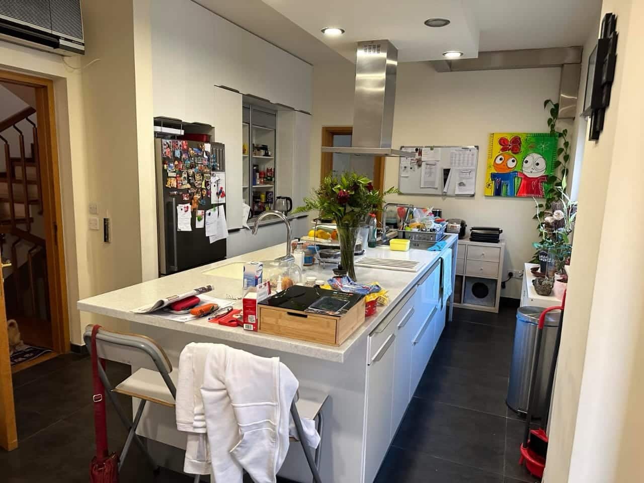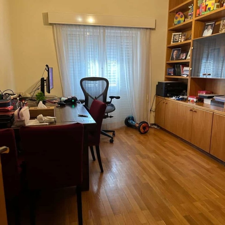On the ground floor: Fully renovated kitchen, office with balcony, double living room/ dining room, bedroom with en-suite bathroom, guest WC.