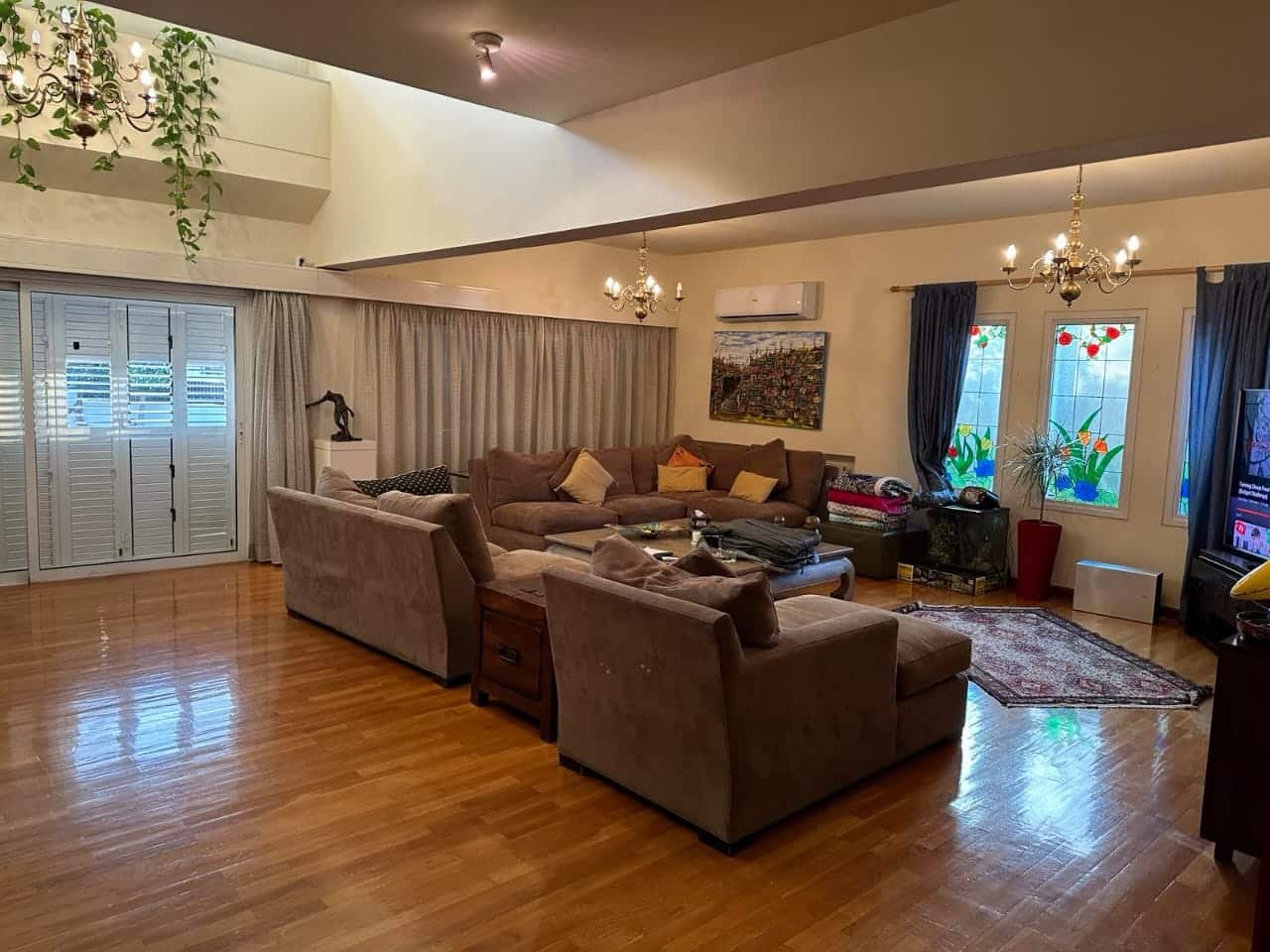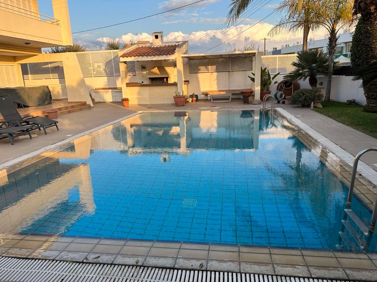 This spacious 5-bedroom house is located in a quiet residential area in Lakatamia, Nicosia. It consists of a Basement: Maids studio, a bedroom, a kitchen, a bathroom, a room for exercise, a wine cellar, sauna.