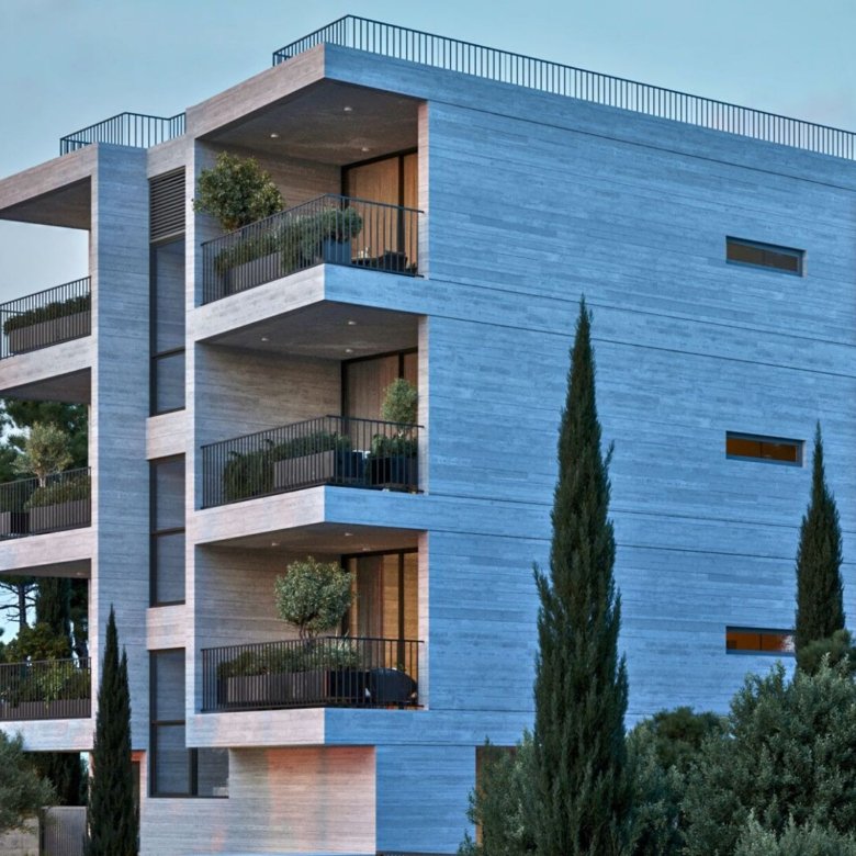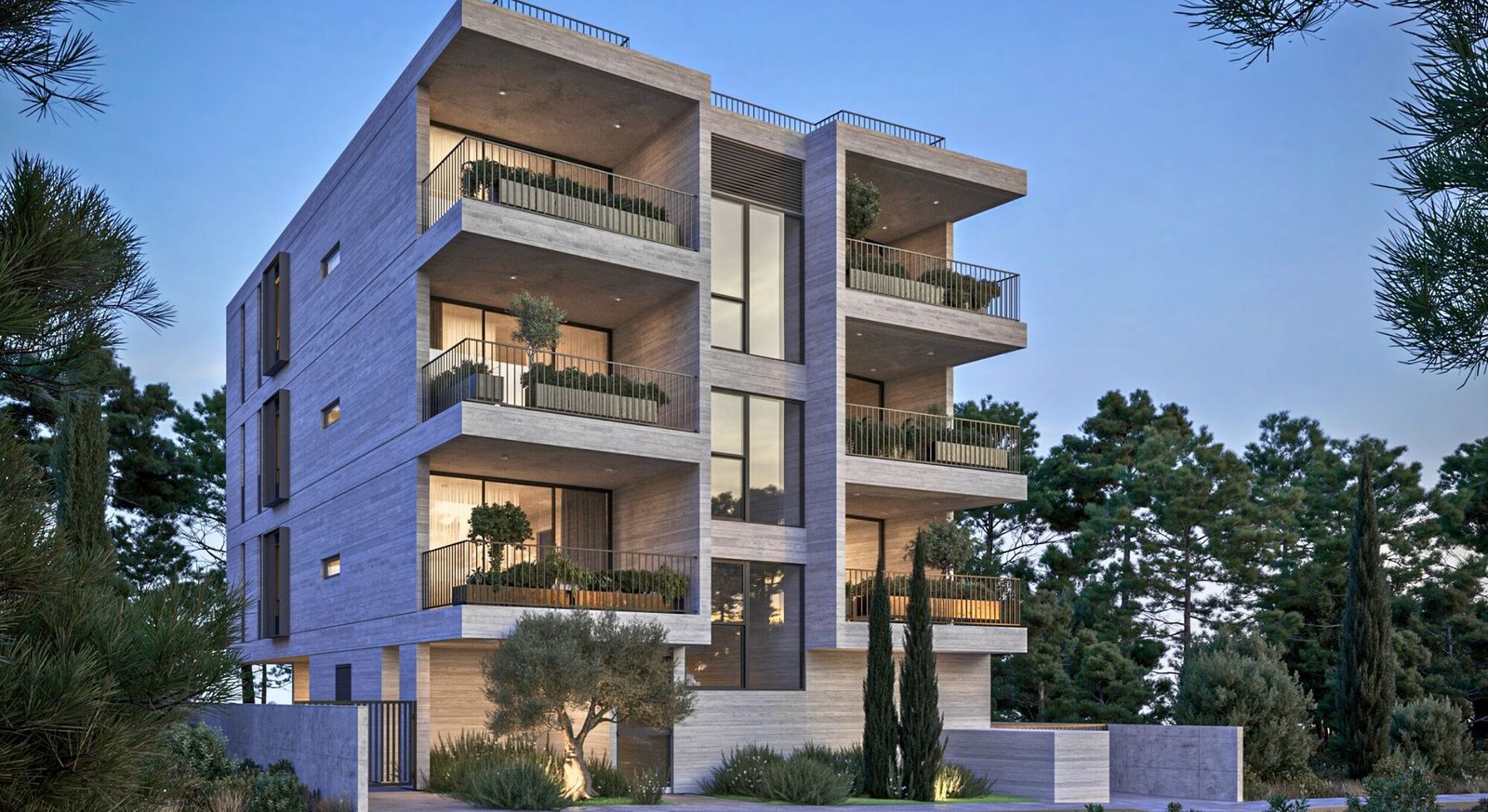 This modern project is located in Strovolos, Nicosia, near The English School and its adjacent park, offering a peaceful living environment close to nature. The development blends contemporary design with functionality, featuring thoughtfully planned apartments with floor-to-ceiling windows and premium Italian kitchens