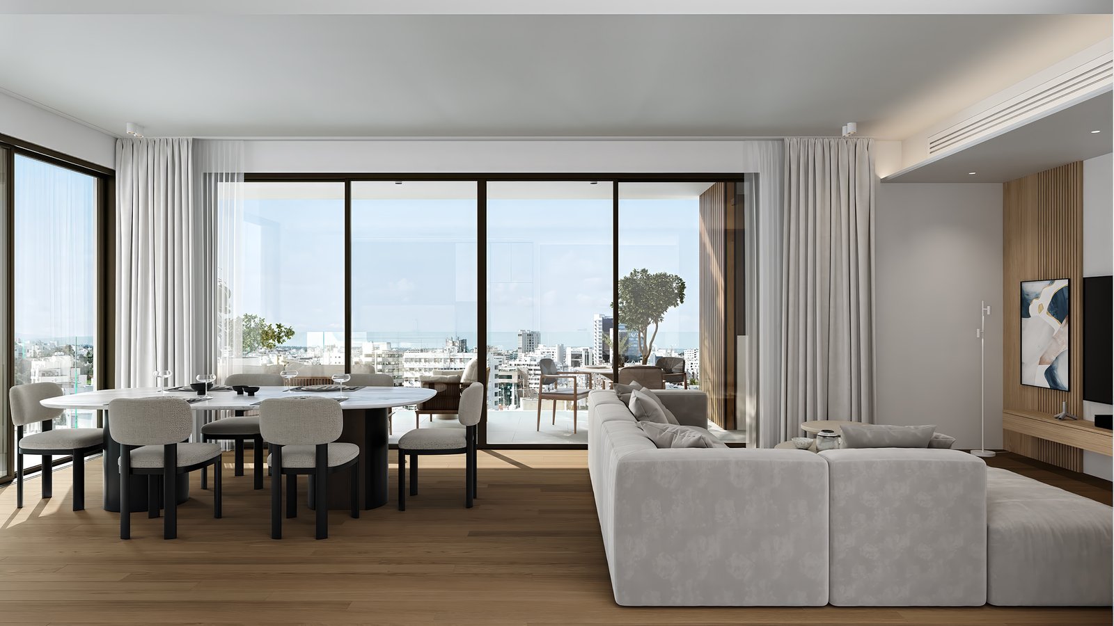 This modern project is located in the city center of Nicosia, close to all amenities. The building features contemporary architecture and is designed and finished to the highest standards. The apartment consists of three bedrooms, two bathrooms, and a covered veranda.