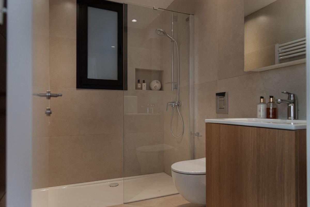 This project is located in Strovolos, Nicosia, close to all amenities. Each typical floor features two 2-bedroom apartments, symmetrically arranged around a central vertical circulation core. The open-plan living, dining, and kitchen areas are positioned along the facade and open directly onto spacious covered balconies.