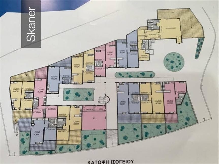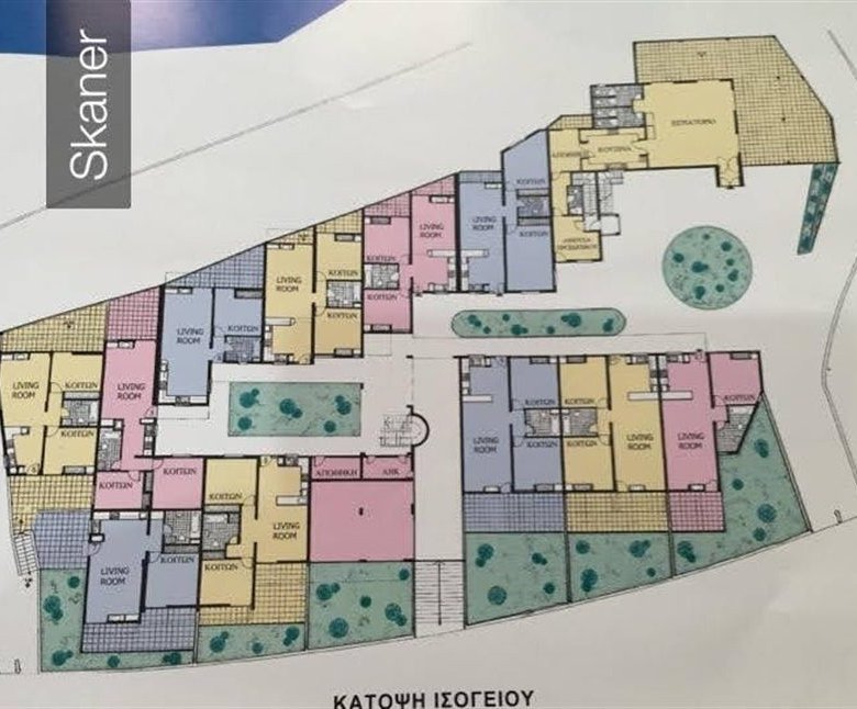 The property is built on a plot of 4.000 m2 only 100m from the sea and consists of twenty-six 1, 2 or 3 bedroom apartments and a restaurant.