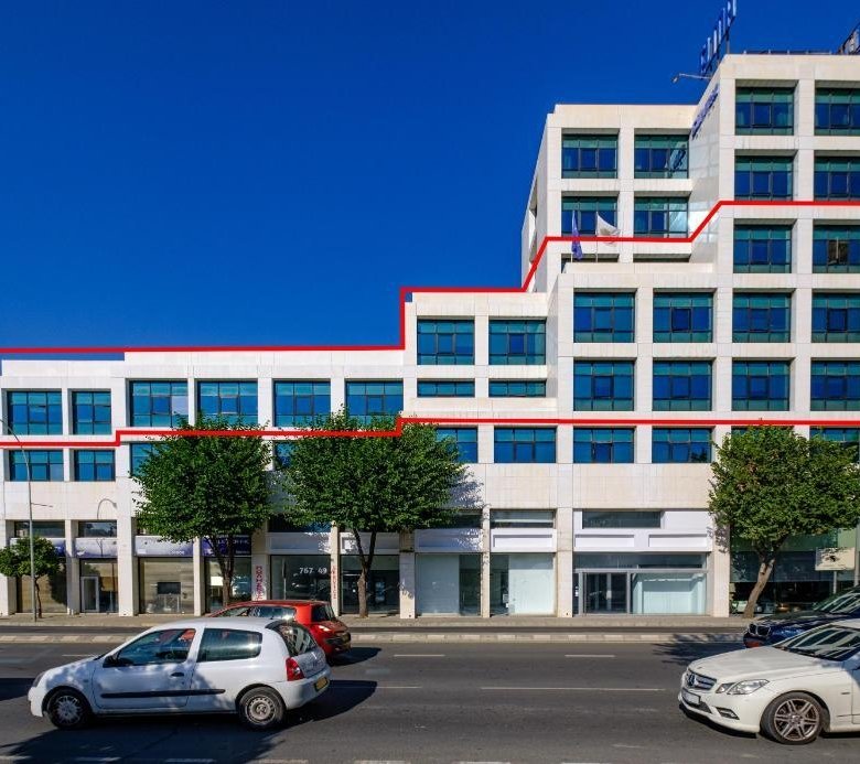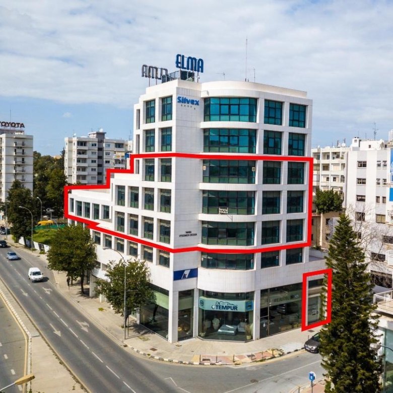 The property refers to offices on the 2nd, 3rd, 4th floors and office no. 4 on the ground floor in Agioi Omologites. The offices are part of a mixed-use building, known as ”Silvex House” which abuts on Griva Digeni Avenue. The 4th floor has an area of 238sqm, the 3rd floor 328 sqm and the 2nd floor 630sqm. The office no. 4 has a ground floor area of 34 sqm plus a mezzanine of 16 sqm. The property has the right to 23 parking spaces. The offices are currently rented by Government Services. The property holds a premium location with high visibility, in Nicosia Business Centre. It offers excellent proximity to all amenities, public services, bars and restaurants. It is a great investment opportunity for high rental income at the centre of the capital. The procedure for the issuance of separate title deeds for each unit has been initiated. Sale to be effected through a transfer of share and a distribution agreement. There is a certificate of final approval in place.