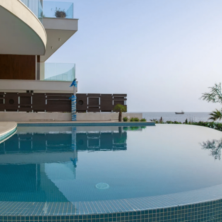 This 3-bedroom beachfront villa is part of a gated community and is in Chloraka, Paphos, right on the sea with easy access to all amenities and close to international schools and Paphos airoport.