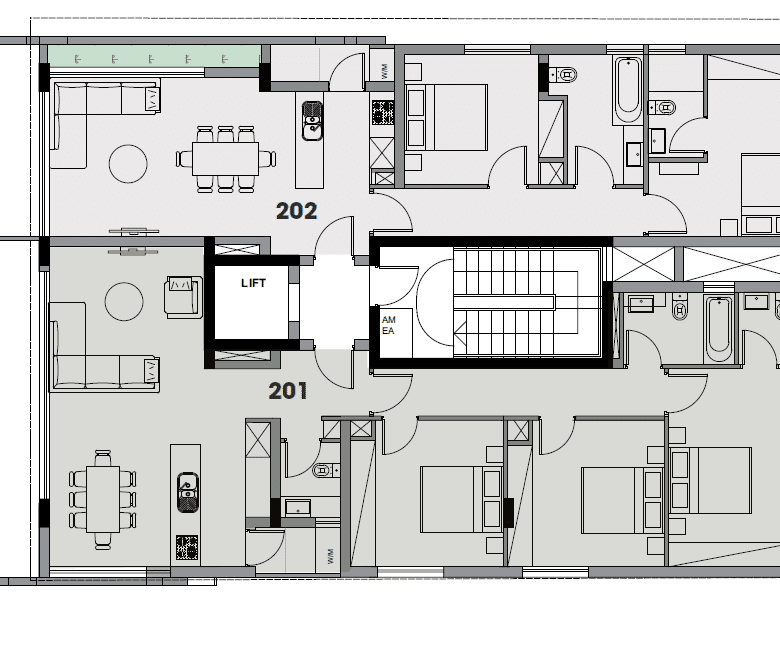 A wrought iron staircase leads to an attractive landing on the upper floor, where there are three double bedrooms and a small fourth bedroom/box room. The larger bedrooms all have private balconies, and the main bedroom features an en-suite bathroom, which, like the family bathroom, is in reasonable condition. Two balconies offer partial distant sea views.