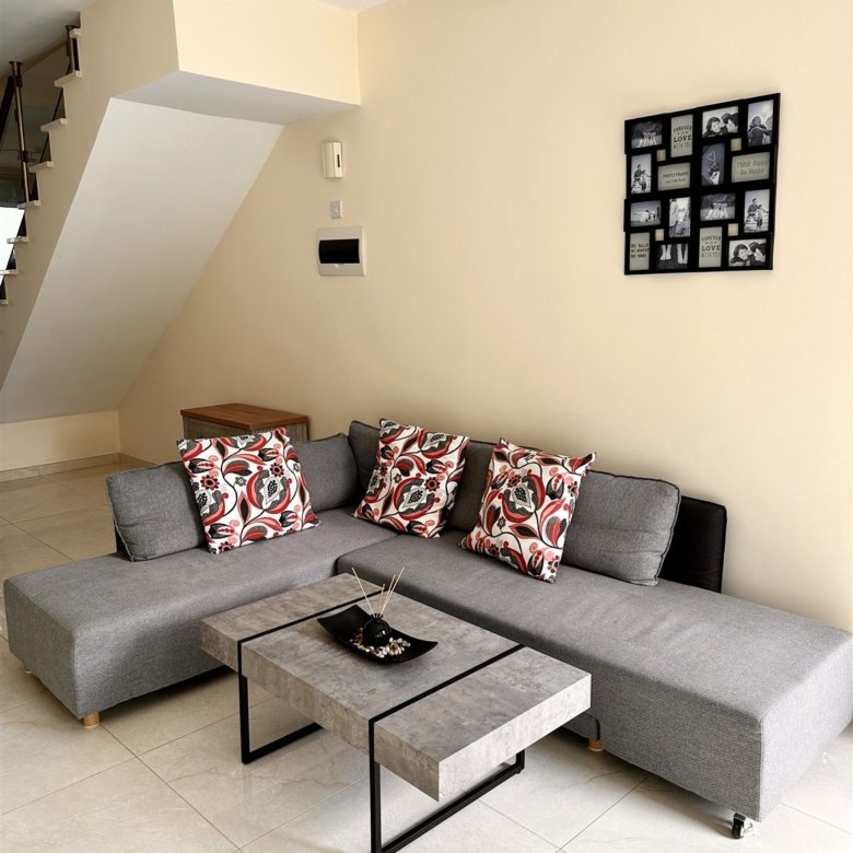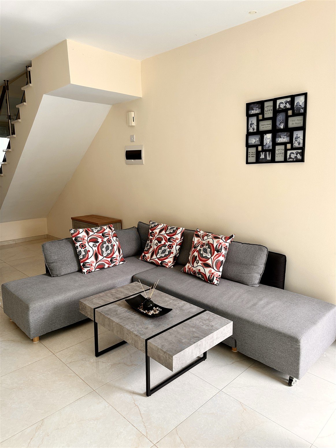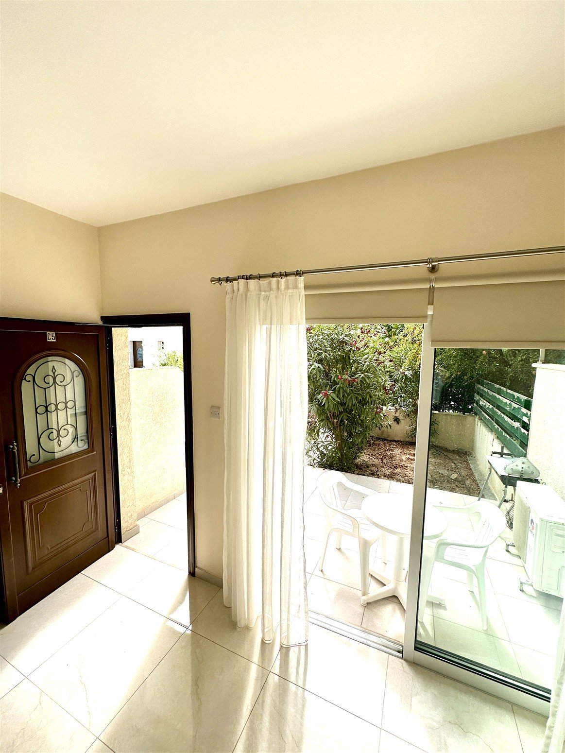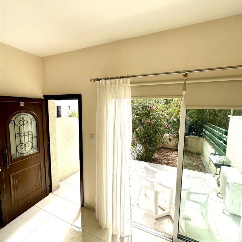 This fully furnished 2-bedroom townhouse in Tombs of the Kings, Paphos, is ideally located just 400 meters from Venus Beach, one of the finest golden beaches in the area and close to a Lidl supermarket. Situated in a peaceful neighborhood, the property offers a quiet living environment while providing easy access to all essential amenities. The townhouse spans two levels, ground and first floor, and is part of a beautifully landscaped complex featuring mature gardens.