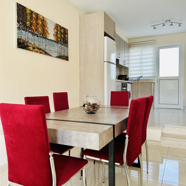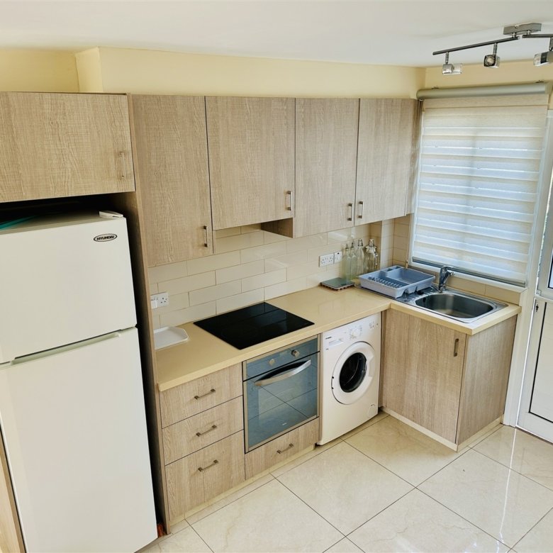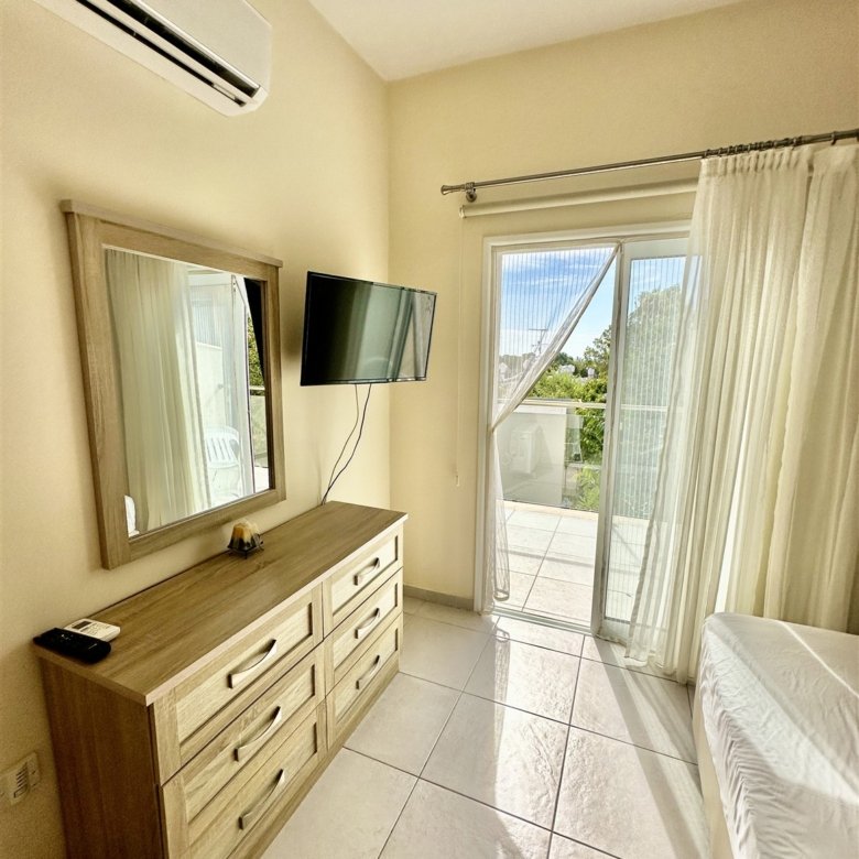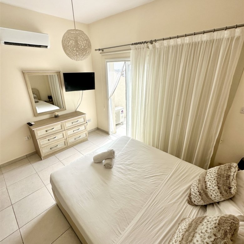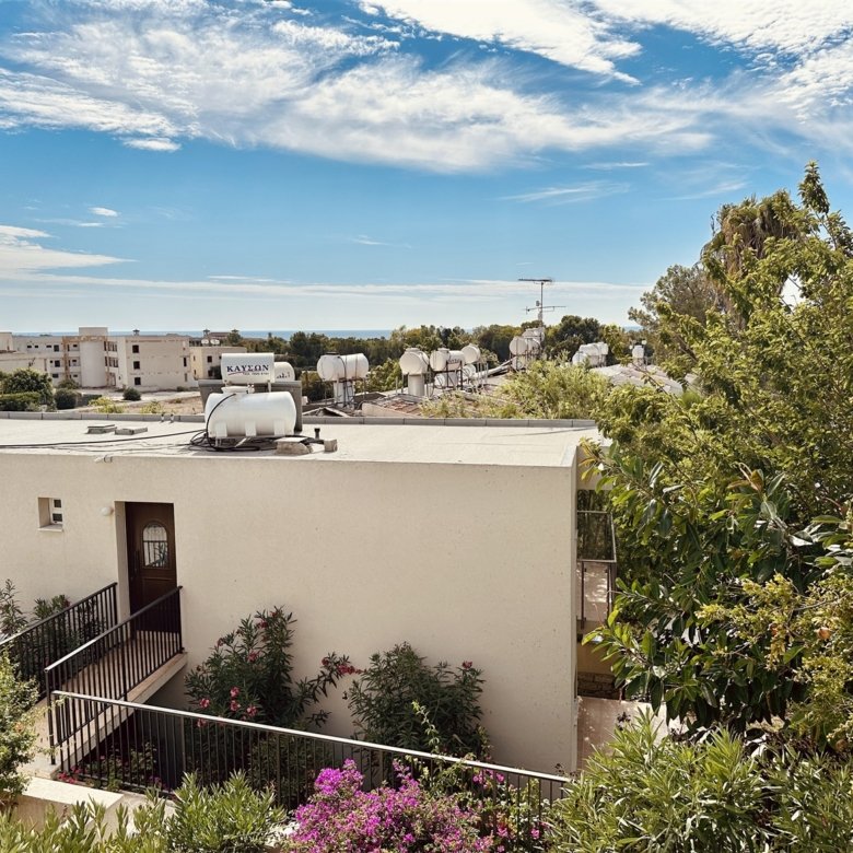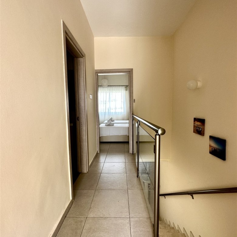 This fully furnished 2-bedroom townhouse in Tombs of the Kings, Paphos, is ideally located just 400 meters from Venus Beach, one of the finest golden beaches in the area and close to a Lidl supermarket. Situated in a peaceful neighborhood, the property offers a quiet living environment while providing easy access to all essential amenities. The townhouse spans two levels, ground and first floor, and is part of a beautifully landscaped complex featuring mature gardens.