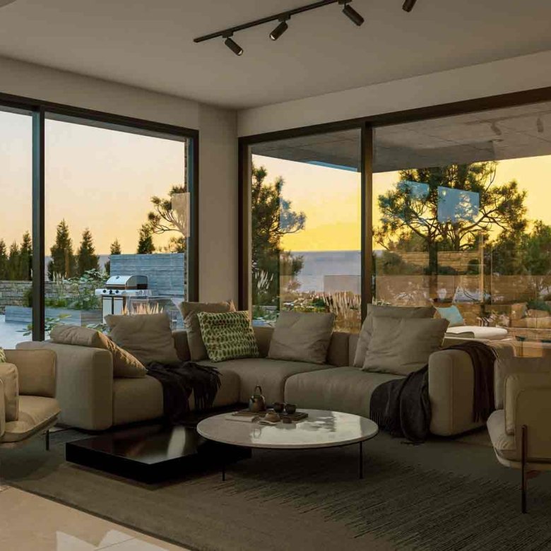 This modern four-bedroom villa is located in Kouklia, Paphos, near the famous golf resort, and is set on a generous plot. The property is designed across three levels: basement, ground floor, and first floor and features a private swimming pool, along with spacious indoor and outdoor living areas. The villa enjoys stunning sea views and beautiful surrounding landscapes.