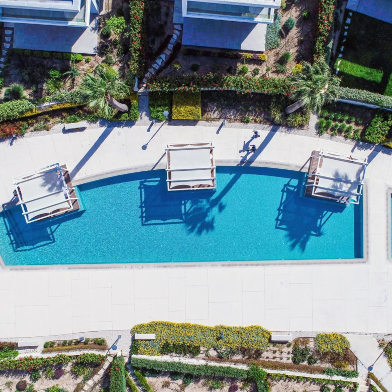 The property is conveniently close to the Coral Beach Resort & Spa, archaeological sites, places of interest, and several Blue Flag-awarded beaches. The villa features 4 spacious bedrooms, 4 modern bathrooms, and a beautifully designed roof garden. The complex offers access to communal facilities, including a sauna, gym, and landscaped gardens.