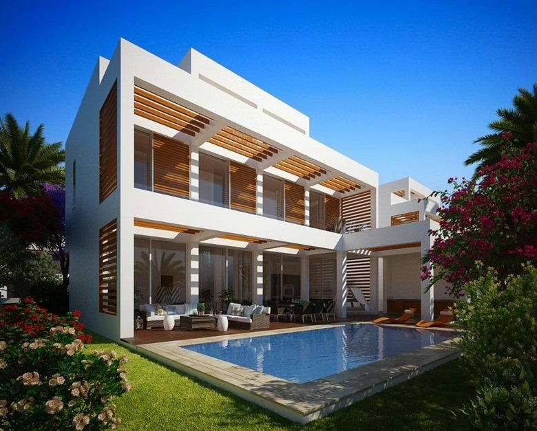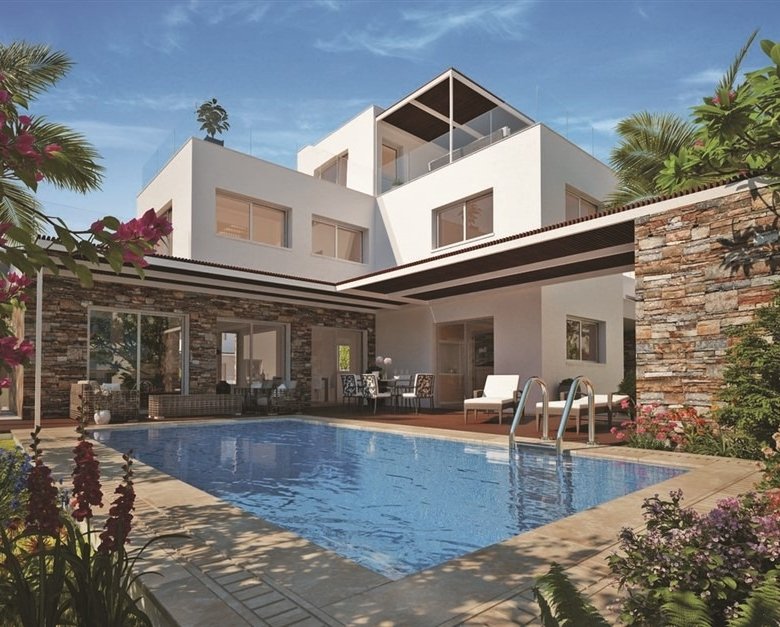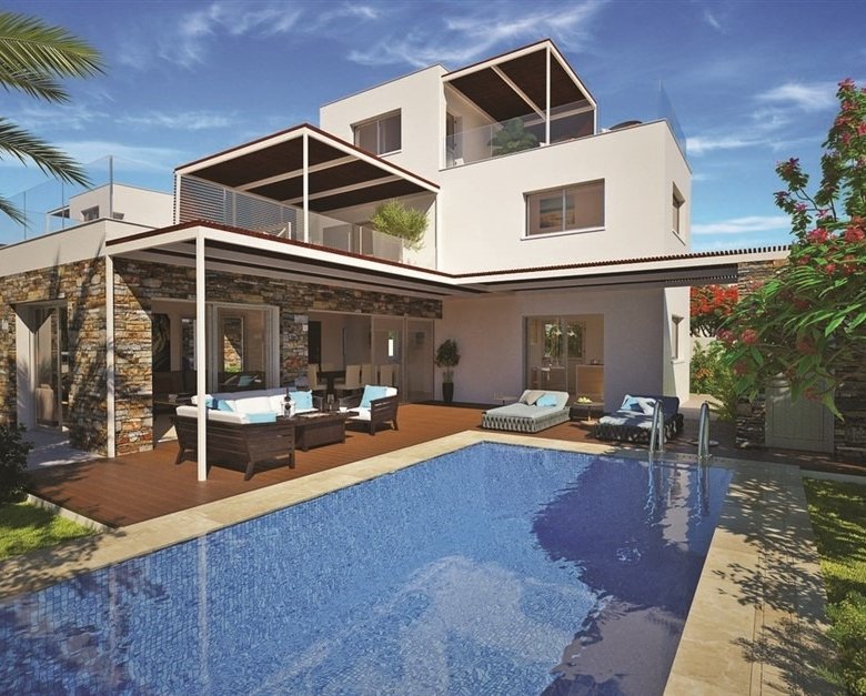 The villas are designed in large plots and enjoy large terraces and private swimming pools. The development is located in front of one of the most famous sandy beaches in Paphos and enjoys easy access to a variety of restaurants, pubs, bars 5-star beach resorts, and other amenities.